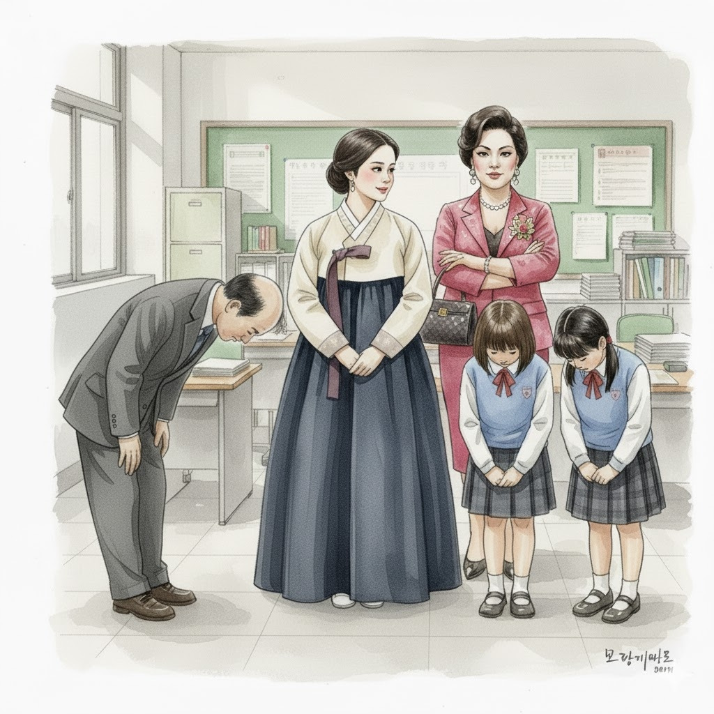 “아니 숙희 엄마는 왜 내게 사과 한마디 안 하고 앉아 있는 거예요?”