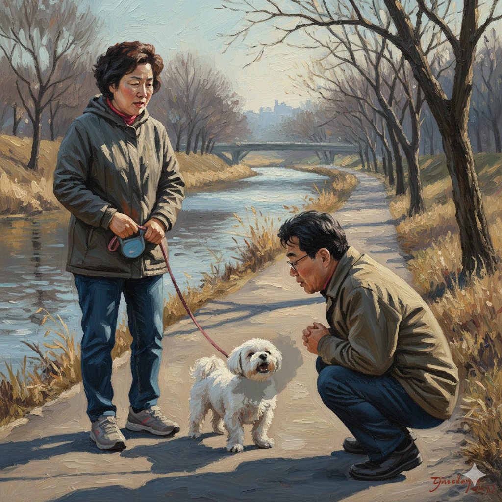 예쁜 몰티즈 강아지 한 마리의 짖는 소리가 이상했다.