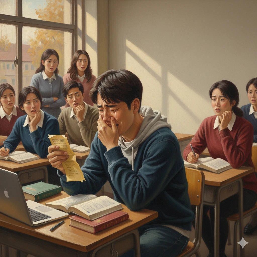 열 글자에 마음 터져 손주가 눈물 쏟는다.