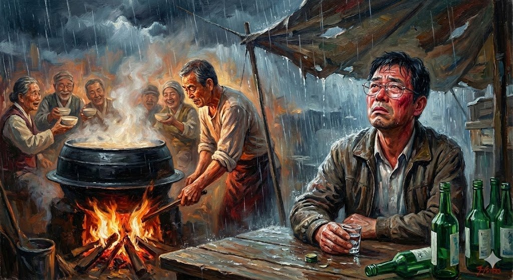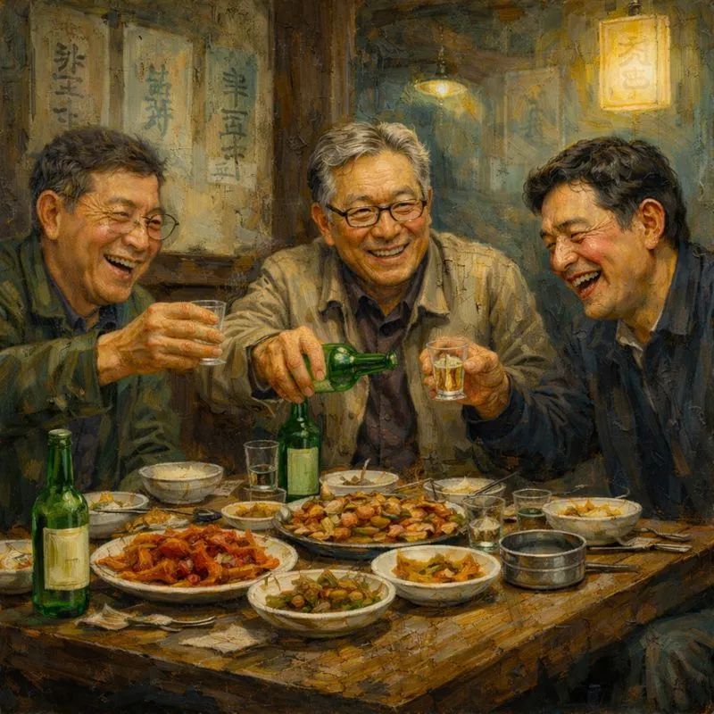 온 동네 술꾼 불러 모아 막걸리 마시던