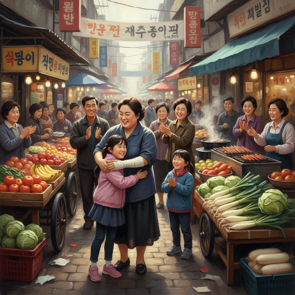 곰소댁이 바닥에 넙죽 엎드려 절을 했다. 시장 상인들은 뜨겁게 환영의 박수를 쳤다.