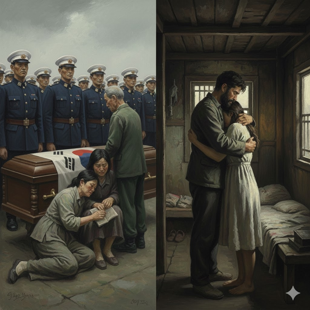 수아 어머니가 헌병의 가슴팍을 밀치며 울부짖었지만, 장교는 서늘한 표정으로 “군법상 불가합니다. 이미 검시관과 법무관이 확인을 마쳤습니다.”라는 말만 기계적으로 반복했다.