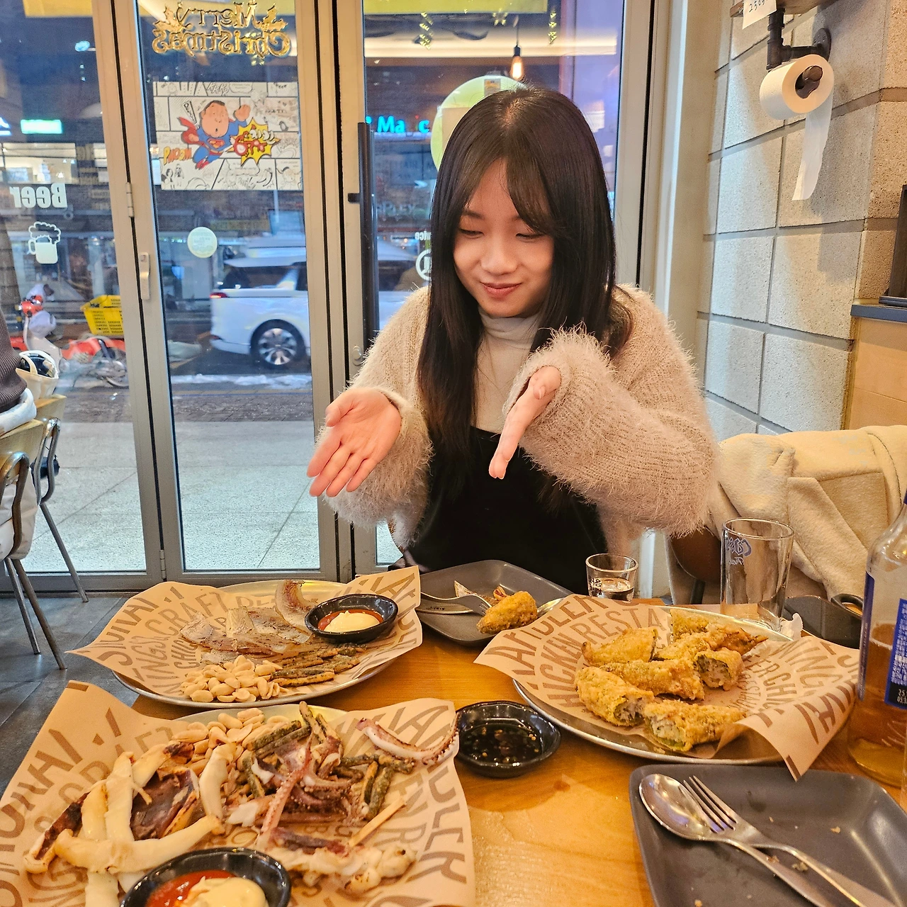 가까이 있는 다율이를 불러 우리 동네 단골 술집에 갔다.