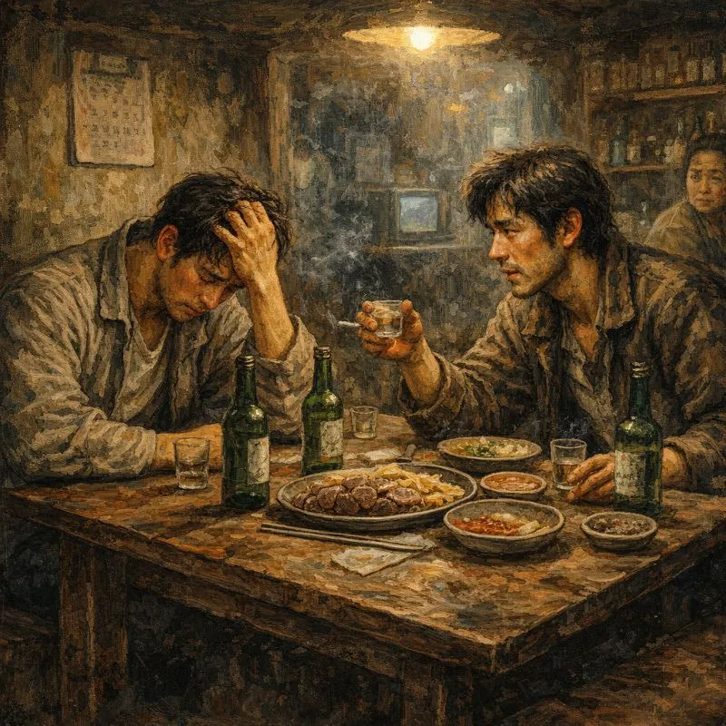 무너진 영혼에게 술은 위로가 아니라, 자기가 얼마나 망가졌는지를 확인시켜 주는 잔인한 거울일 뿐이었다.