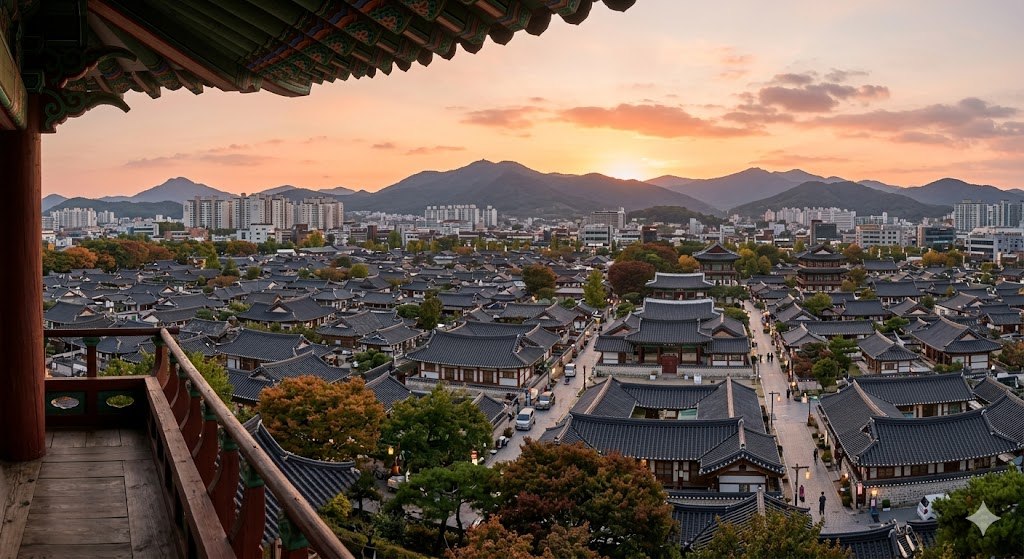 한옥마을 기와지붕 위를 한참이나 서성거렸다.