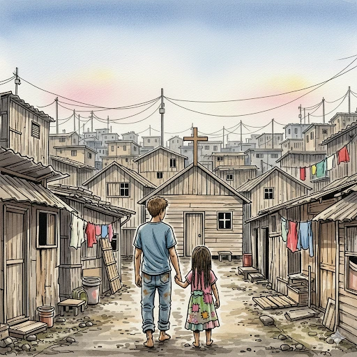 낯선 목소리에 고개를 들자, 조금 있으면 대머리가 될 듯한 벽안의 신부가 활짝 웃으며 숙희를 덥석 안아 올렸다가 내려놓으며 손을 내밀고 있었다. 단정한 클러지 셔츠와 검은 양복 차림, 그의 모습은 판자촌 풍경과 묘하게 어울리지 않으면서도 이상하게 따뜻해 보였다.