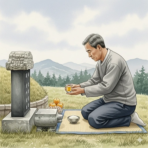 "아버지 산소에 소주 한잔 올려놓고 있다"