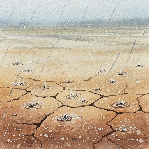 메마른 땅에 빗방울 떨어질 때