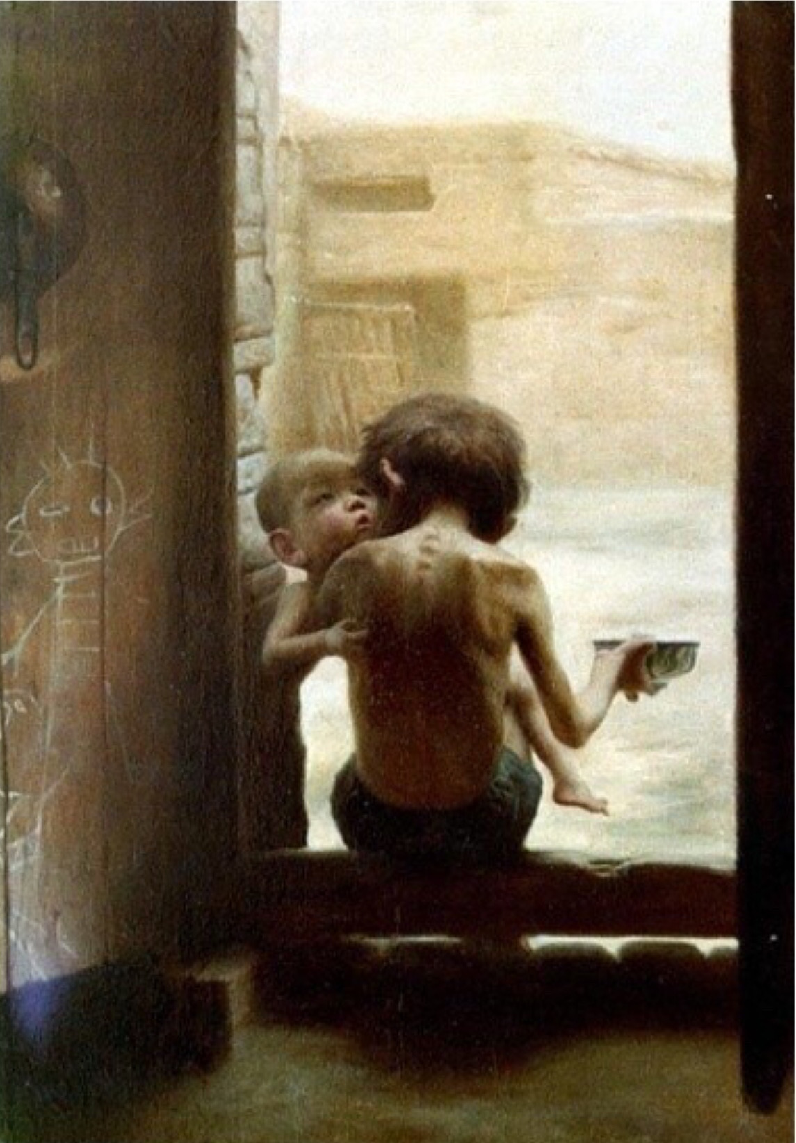 군대에 있을 때 뼈가 앙상하게 보이는 어린아이 사진을