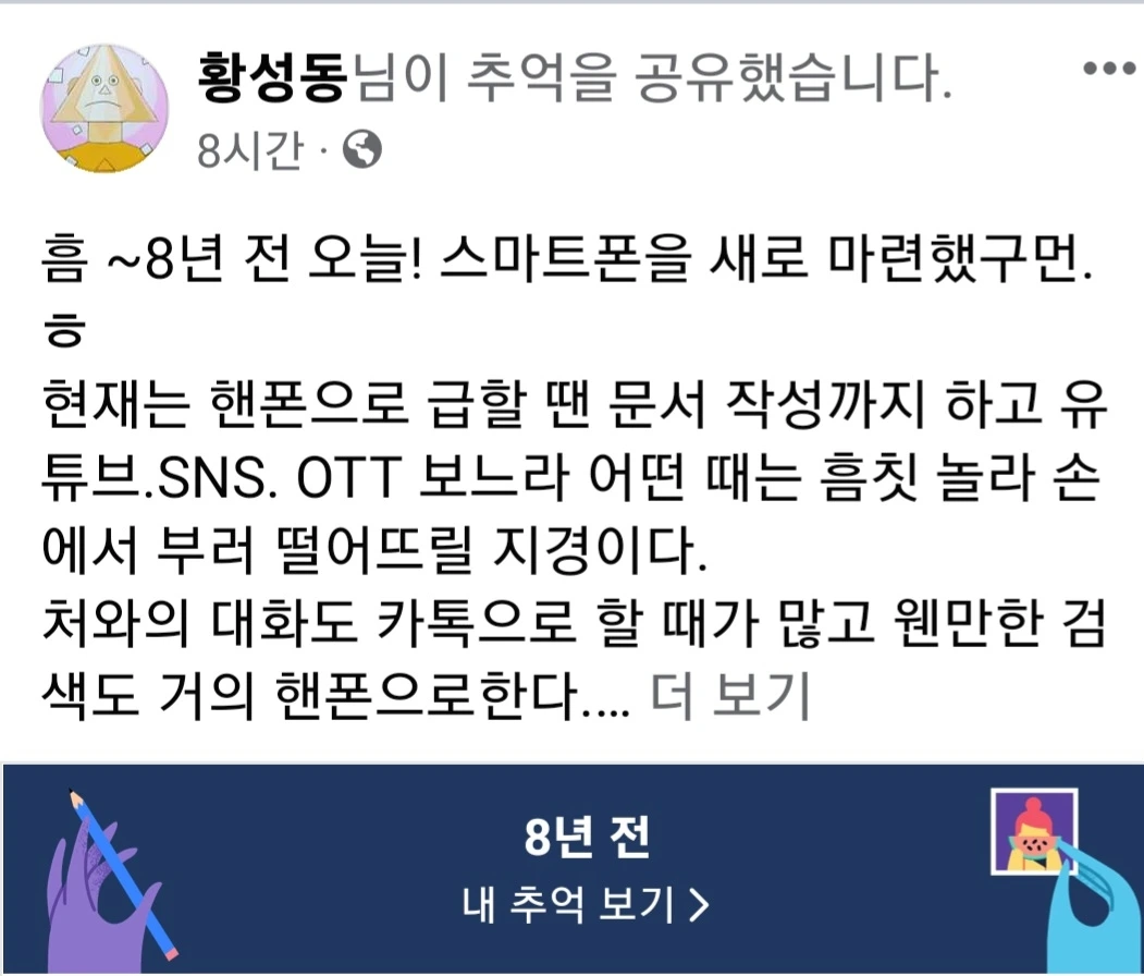 흠 ~8년 전 오늘! 스마트폰을 새로 마련했구나. ㅎ