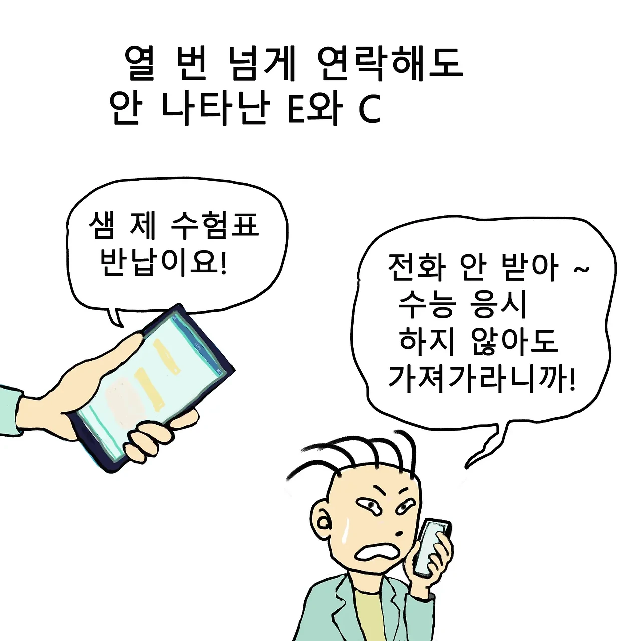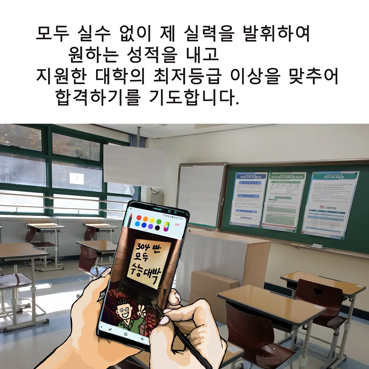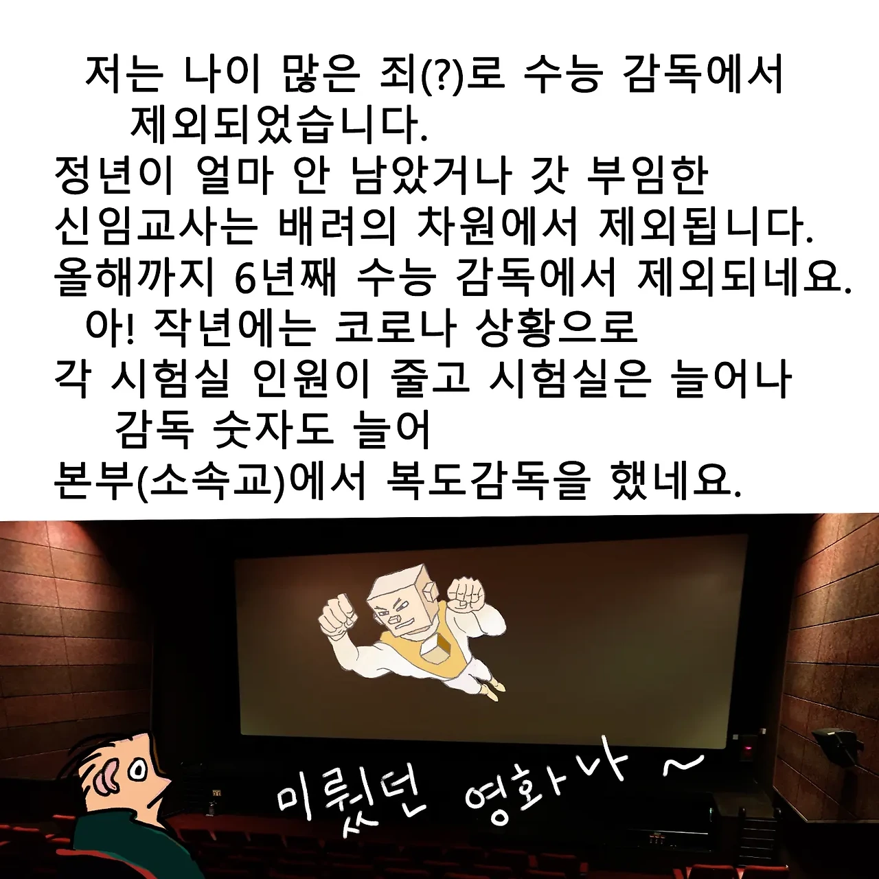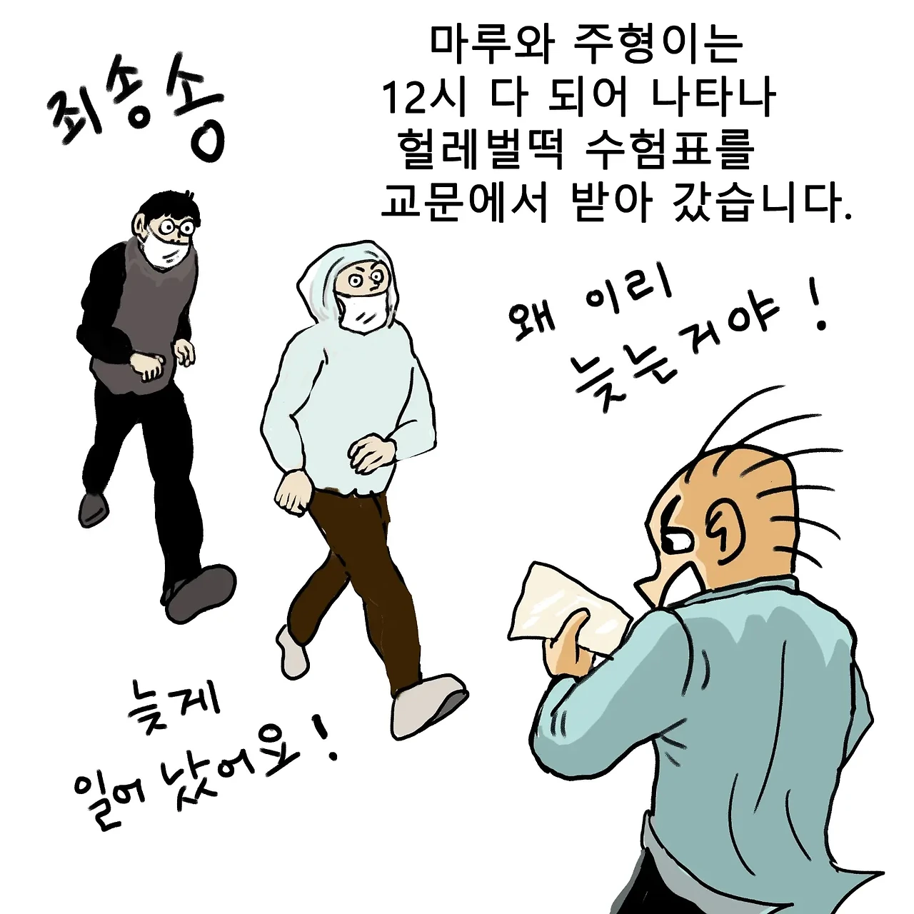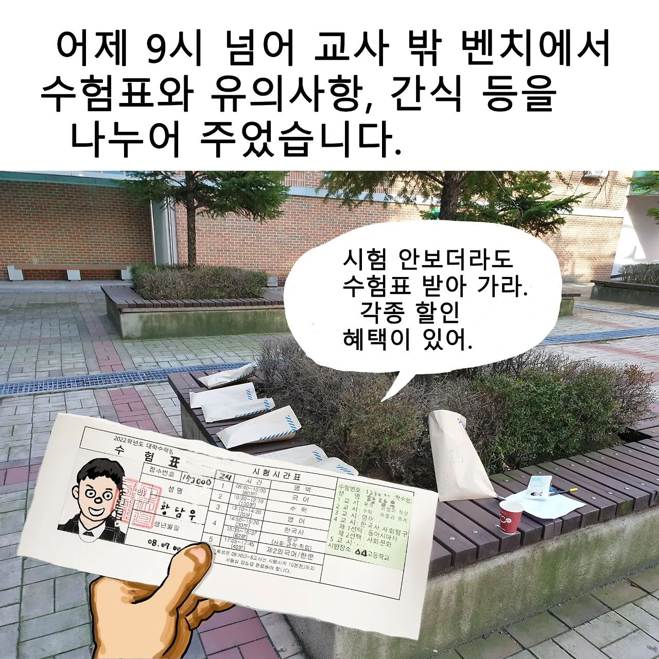퇴임 전 2021년 마지막 학교에서 만났던 수능시험 날 스케치를 만화로 그린 것을