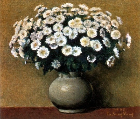 그러한 예시로 정물화라는 서양미술의 한 범주를 선택하면서도 화병의 소재는 백자로 하면서 한국의 소박하고도 멋스러움을 보여준다.
