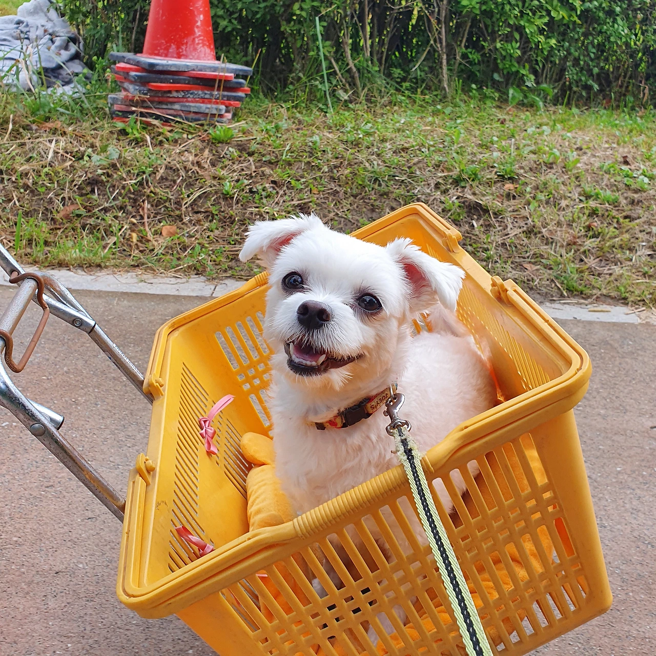 주몽이는 명절마다 노란 바구니 드라이브를 즐겨요! 강아지 유모차는 싫어하는데 이건 엄청 좋아해서 명절마다 멀리멀리 여행을 떠난답니다!