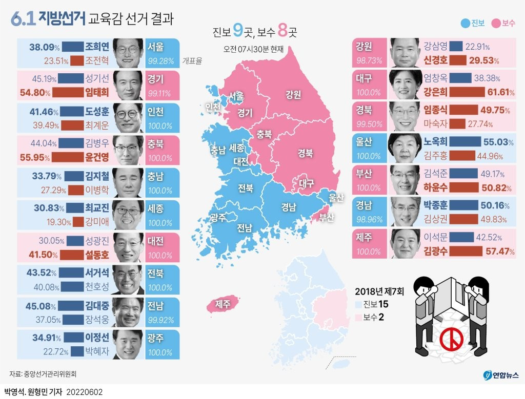 7월부터 임기가 시작된 교육감은 어떤가. 12년간 지속된 진보 교육감 시대가 끝나고 9:8의 진보와 보수교육감 경쟁이 시작되었다. 정치 성향이 다른 시도지사와 시도교육감이 만나는 8개 지역은 교육정책을 두고 수시로 부딪힐 것이 예상된다. 당장 초중등교육에 쓰이던 연간 약 3~4조의 교육세를 내년부터 대학 교육에 쓰겠다는 정부와의 갈등과 교육청 예산 축소에 따른 문제를 어떻게 해결할 것인지도 큰 과제가 될 것이다.