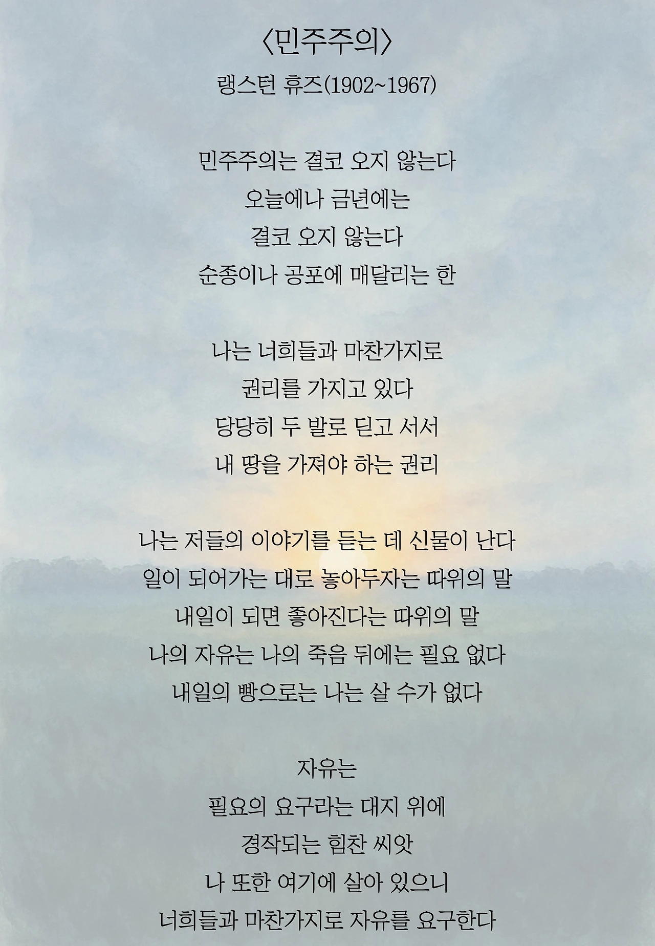 지난 12월의 내란, 이전에도 그랬지만 과연 상식이란 게 있기는 있는 건가, 기가 막히고 울화가 치미는 하루하루였습니다. 역사는 이대로 퇴보하는가, 민주주의는 이렇게 허약한 것인가, 절망, 좌절, 우울의 긴 터널을 지나왔습니다. 이제 새 지도자를 뽑습니다. 마침내 빛을 향해 갈 수 있기를 희망합니다. 그러한 힘이 우리에게 있음을 믿습니다.