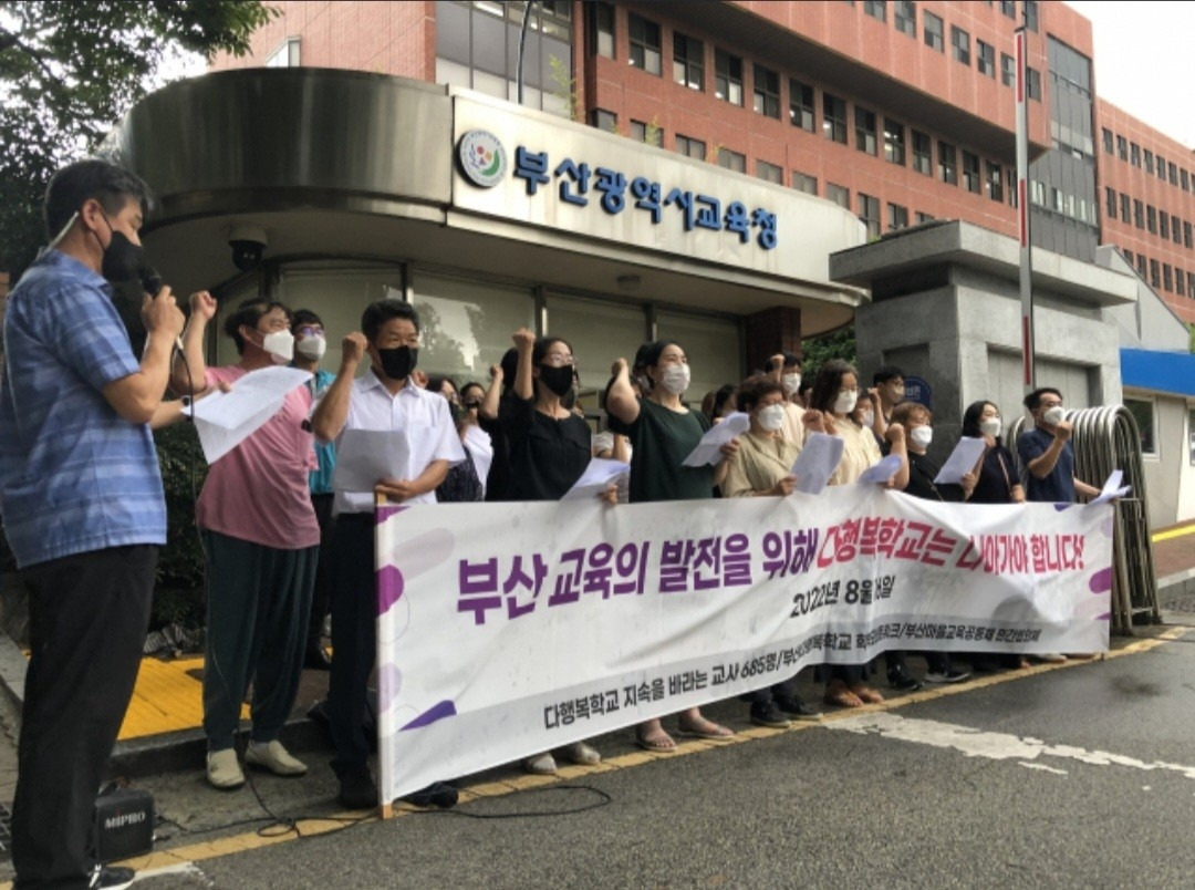 부산은 혁신학교 신규 지정을 중지하고, 재지정 또한 총 10년까지만 가능하다고 발표한 상황으로 학부모, 교원, 마을공동체 연합으로 이에 항의하는 기자회견을 열었으며, 교사, 관리자 대표가 혁신학교 신규 미지정 및 일제 시험 강행에 대한 항의 방문 및 면담을 진행하였다. 마을공동체협의회에서는 교육감 면담을 통해 혁신학교, 마을공동체 사업 지속을 요구한 상황이며, 학부모네트워크의 면담 요구에는 응하지 않은 상황이라고 한다.