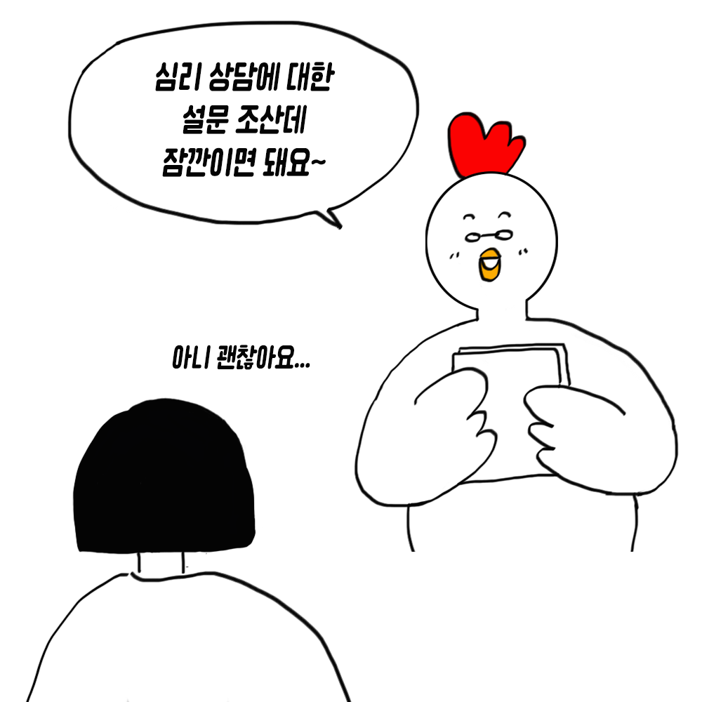 "아... 제가 지금 심리 상담과 관련된 설문 조사를 하고 있는데 시간이 얼마 안 걸리는 심리 검사인데