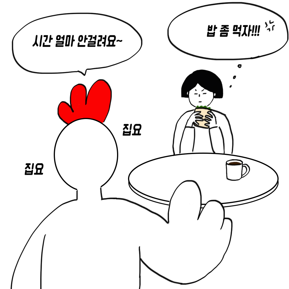나는 아직 다 먹지 못한 샌드위치를 얼른 먹고 싶단 생각에 얼렁뚱땅 대답했다.