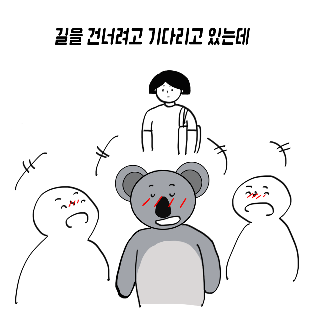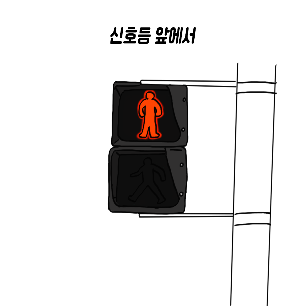 편의점으로 가기 위해서는 길을 건너야 해서 횡단보도 앞에 서 있는데