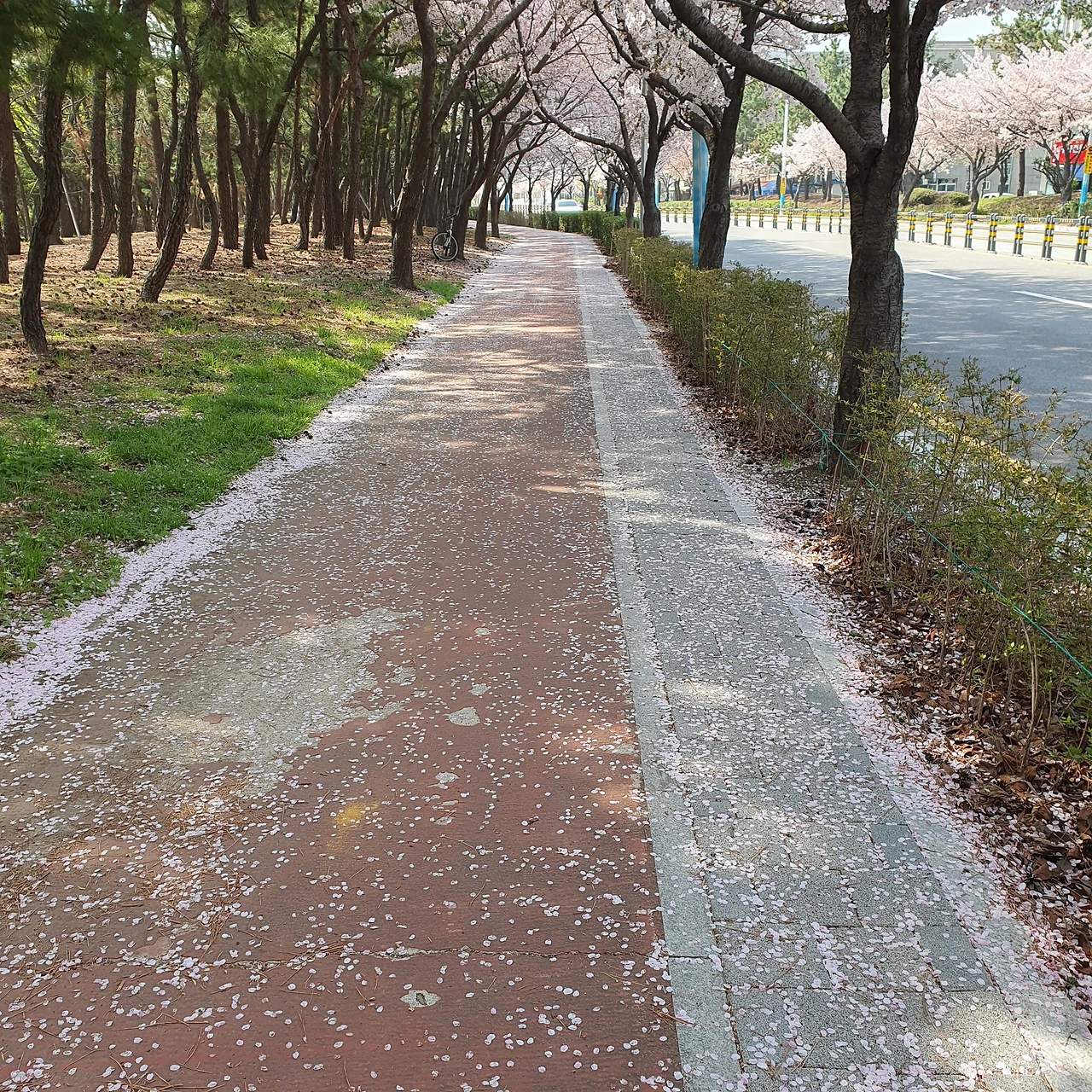 길 반대쪽에 바다가 있고, 숲이 있고, 벚꽃길이 있고, 다음에 자동차가 다니는 도로, 도로 옆에 아파트가 조용하게 자리하고, 인근에 철새도래지인 만큼, 철새 조망대도 있다. 그런 길을 걸으면 금방 기분이 좋아진다. 그냥 조용한 산책이 즐겁다. 이 길을 걸으면 걱정은 사라지고 행복한 생각만 든다. 그래서 오늘은 장범준의 벚꽃엔딩을 반복해서 들으며 2시간을 걸었다.