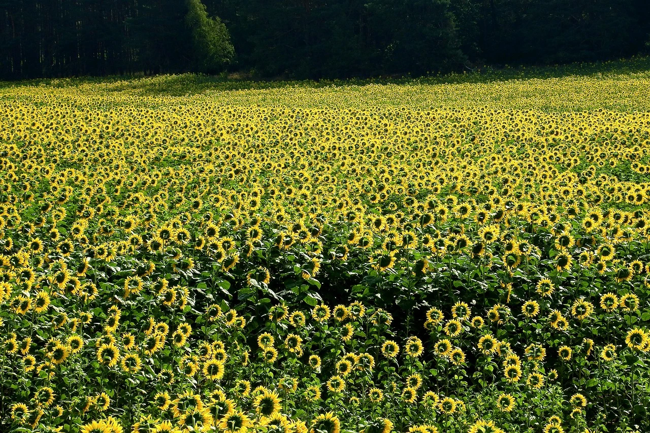 높이 쭉 뻗은 줄기 끝에 매달린 커다란 황금 접시들은, 한결같이 태양을 향해 고개를 숙이고 있다.