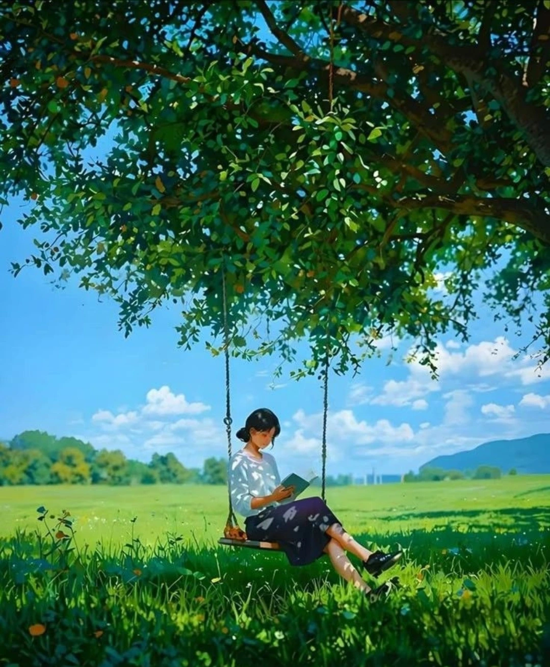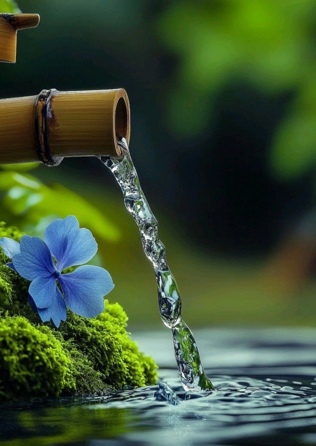 푸른 나무 그늘 아래서 길게 늘어지는 오후, 연못에 비친 누각의 그림자는 시간의 흐름을 잠시 멈춰 세운다.