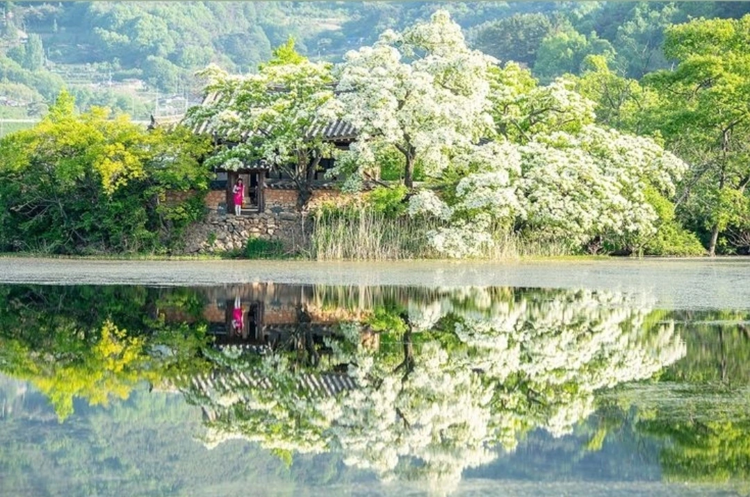 늦봄의 햇살이 백옥(白玉) 같은 꽃송이를 통해 여리고 부드럽게 스며나와, 공기本身이 희고 투명한 빛으로 변하는 것만 같았다.