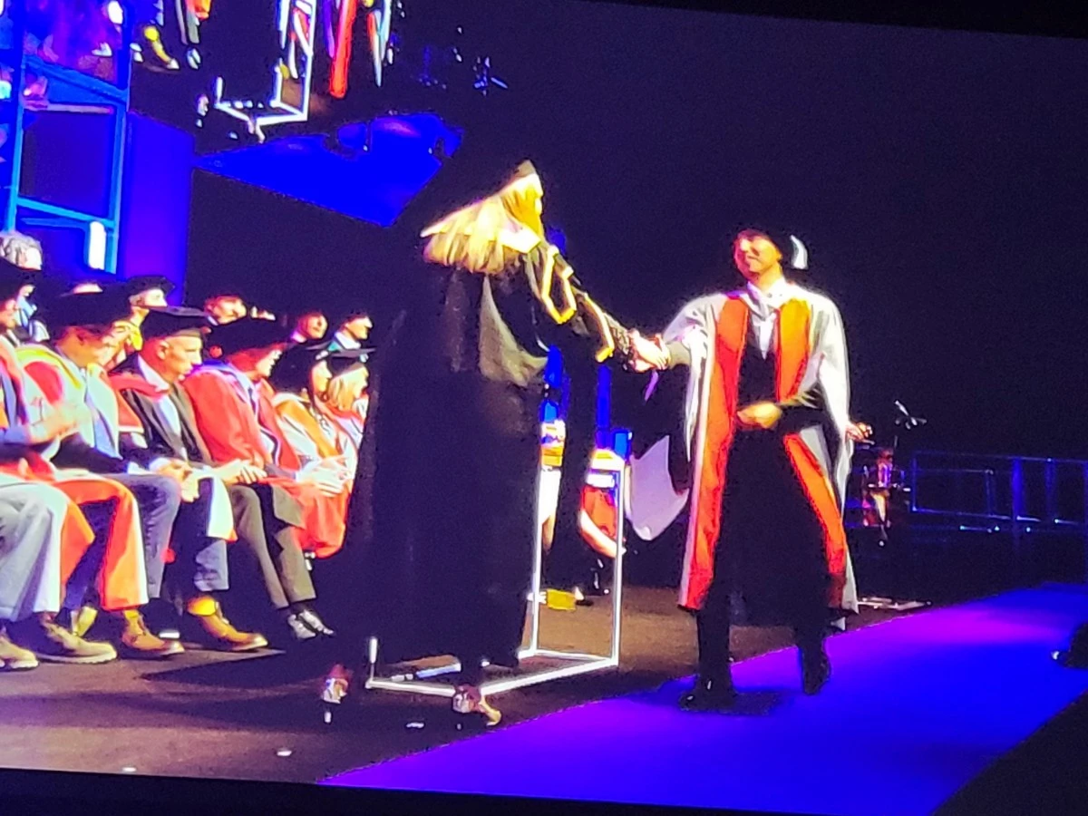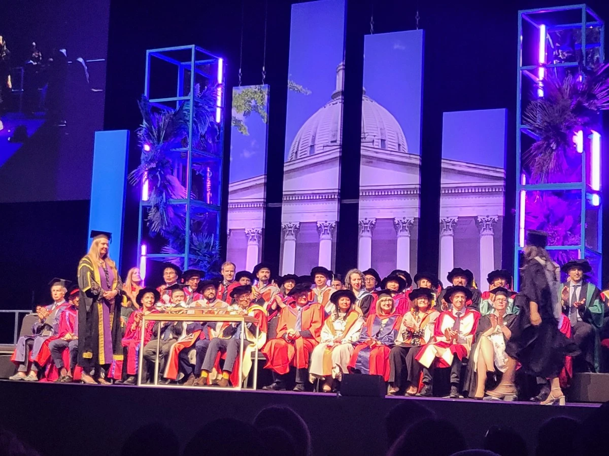 학위식은 부총장 인사말, 졸업생 및 재학생 인사 등이 진행되고, 각 단과대 별 학장의 소개와 함께 졸업생 이름이 호명됩니다. 그러면 졸업생이 당당히 단상으로 걸어 나와 부총장과 악수하고 이 장면이 졸업 기념사진이 됩니다.