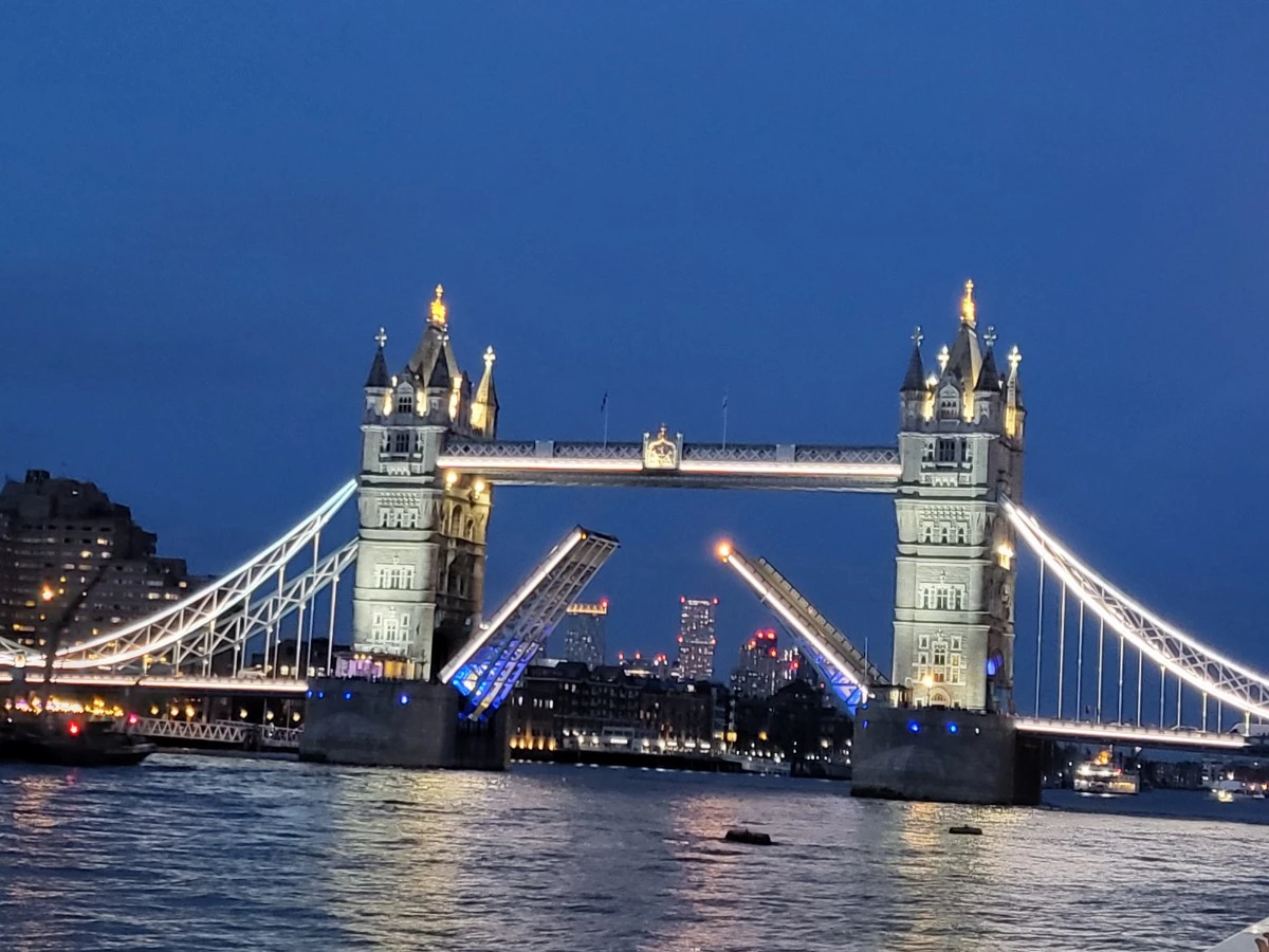 학위식을 마치고 이태리 식당에 가서 저녁 식사했습니다. 아들과 며느리 그리고 한국에서 참석한 이모들 모두 런던 타워에 가서 기념사진을 찍었습니다. 마침 큰 배가 지나가며 타워 브리지가 양쪽으로 분리되면서 활짝 열리는 장면을 목격하고 사진으로 남깁니다. 하나님의 은혜가 넘치는 시간을 보냈습니다. -끝-