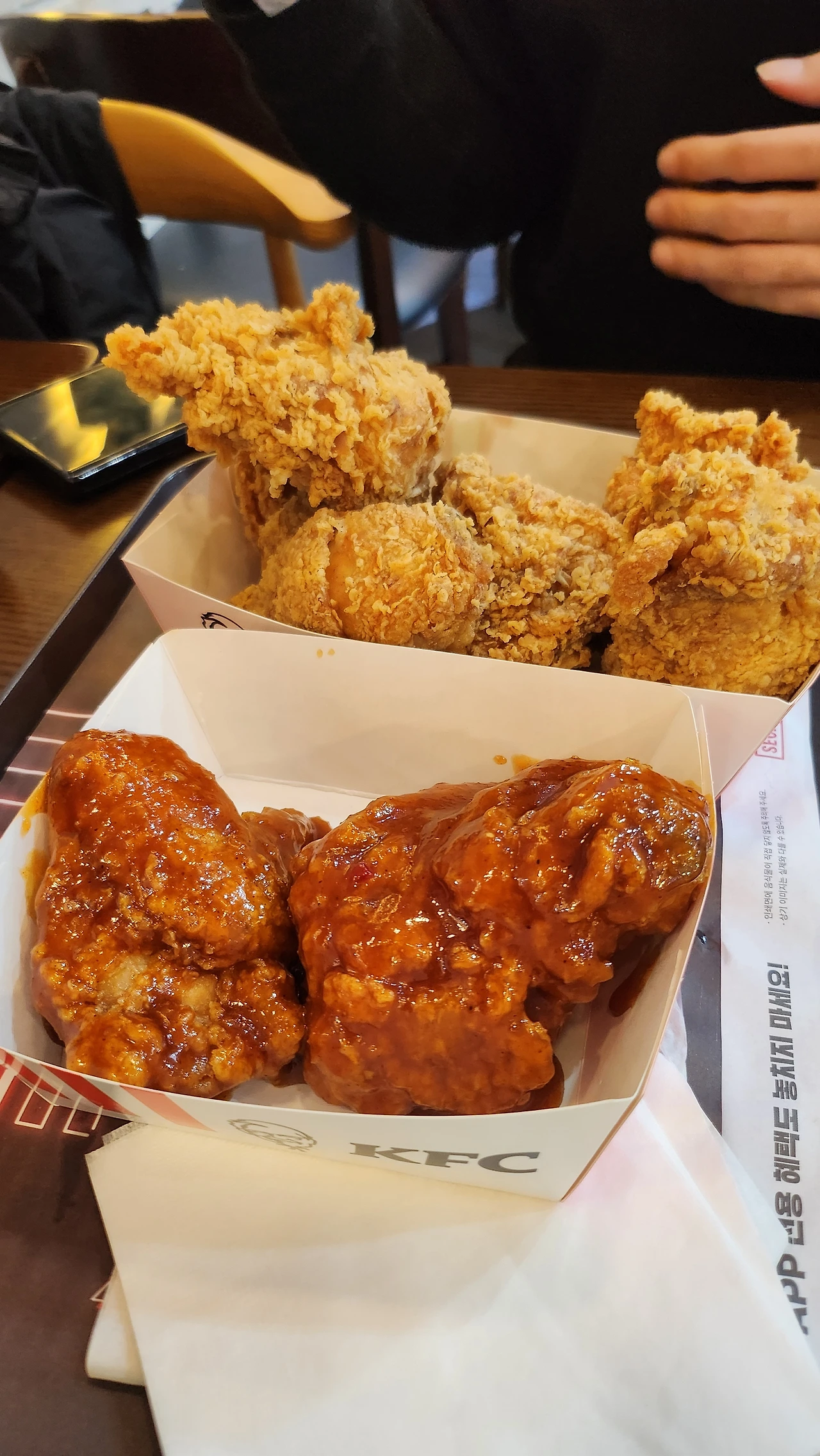영화가 끝나니 9시가 넘어갔다. KFC는 9시 이후에 치킨 1+1! 오빠 덕에 알은 꿀팁이다! 오래간만에 먹은 KFC는 바삭하고 옛날 BBQ를 먹는 느낌이 났다 ㅎㅎ