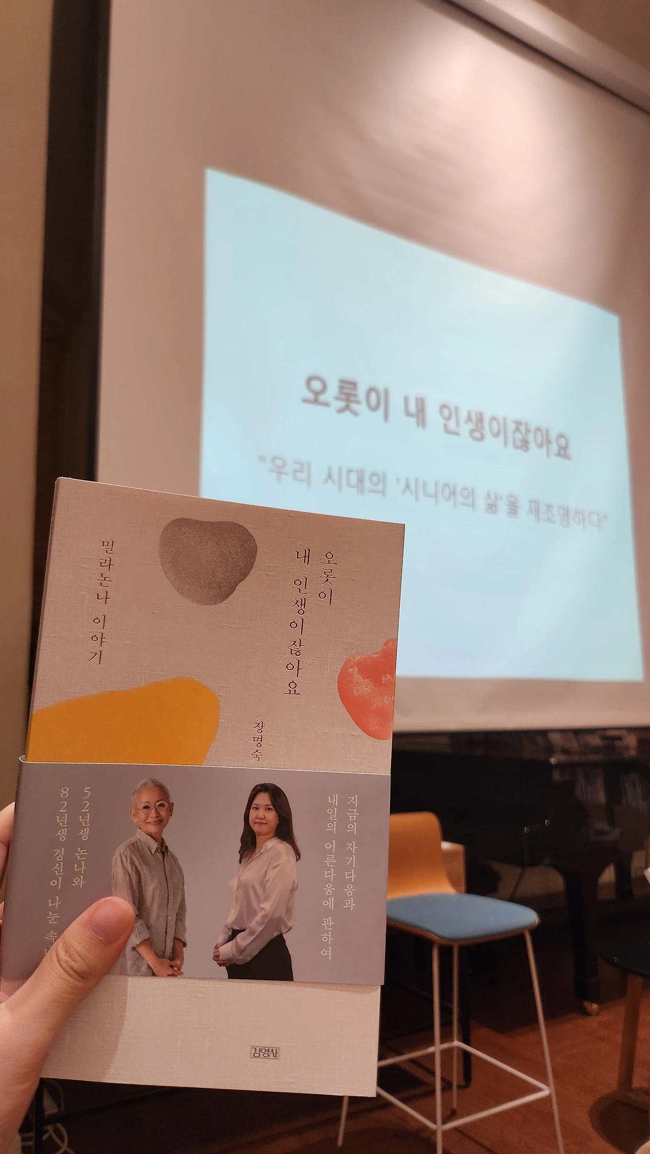 이번 책은 "오롯이 내 인생이잖아요"라는 책이었다. 북콘서트는 책을 읽어도 읽지 않아도 모든 관점에서 도움이 된다. 책을 읽으면 작가의 생각을 더 깊이 있게 알 수 있어서 좋고, 책을 아직 읽지 않았다면 그 책을 읽기 전에 예고편을 먼저 보는 느낌이라 좋다.