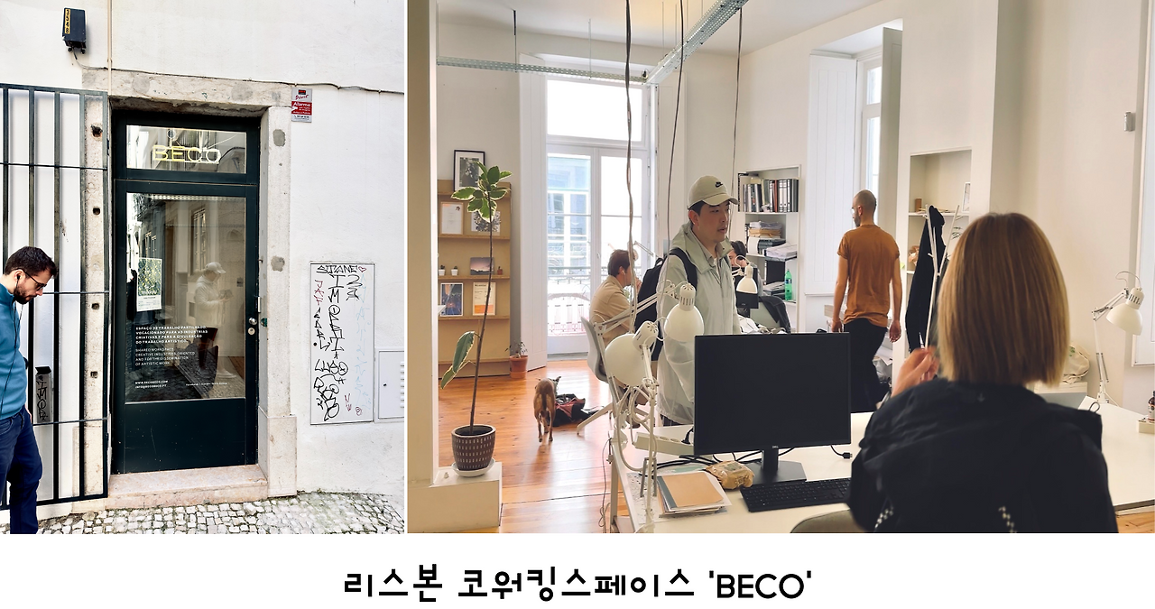 리스본에서 3일째 되던 날 또 다른 코워킹스페이스를 가보기 위해 택시를 타고 이동을 했다. 아직 시차적응이 완전히 되지 않아 컨디션은 그다지 좋지 않았지만, 리스본일정이 짧은 만큼 낭비할 시간이 없었다. 두 번째로 방문한 코워킹스페이스는 리스본 해안가 마르빌라에 위치한 'work hub'라는 곳이다. 처음 방문했던 'BECO'가 작은 카페 같은 느낌이었다면 여긴 조금 더 오피스 같은 느낌이었다. 스타트업 기업이 전체를 렌트하는 오스피룸도 있었고, 우리 같은 노마드들이 사용하는 공용 공간도 있었다. 하루에 17유로였는데 한국과 비교했을 때 그렇게 부담되는 금액은 아니었다. 여기도 마찬가지로 반려동물 출입이 가능했고, 누구나 앉은자리에서 전화통화나 화상미팅을 포함해 아주 자유롭게 눈치 보지 않고 자기 일을 하고 있었다. 인테리어도 고급스러워 보여 자세히 살펴봤더니 대부분이 이케아 제품들이었다.