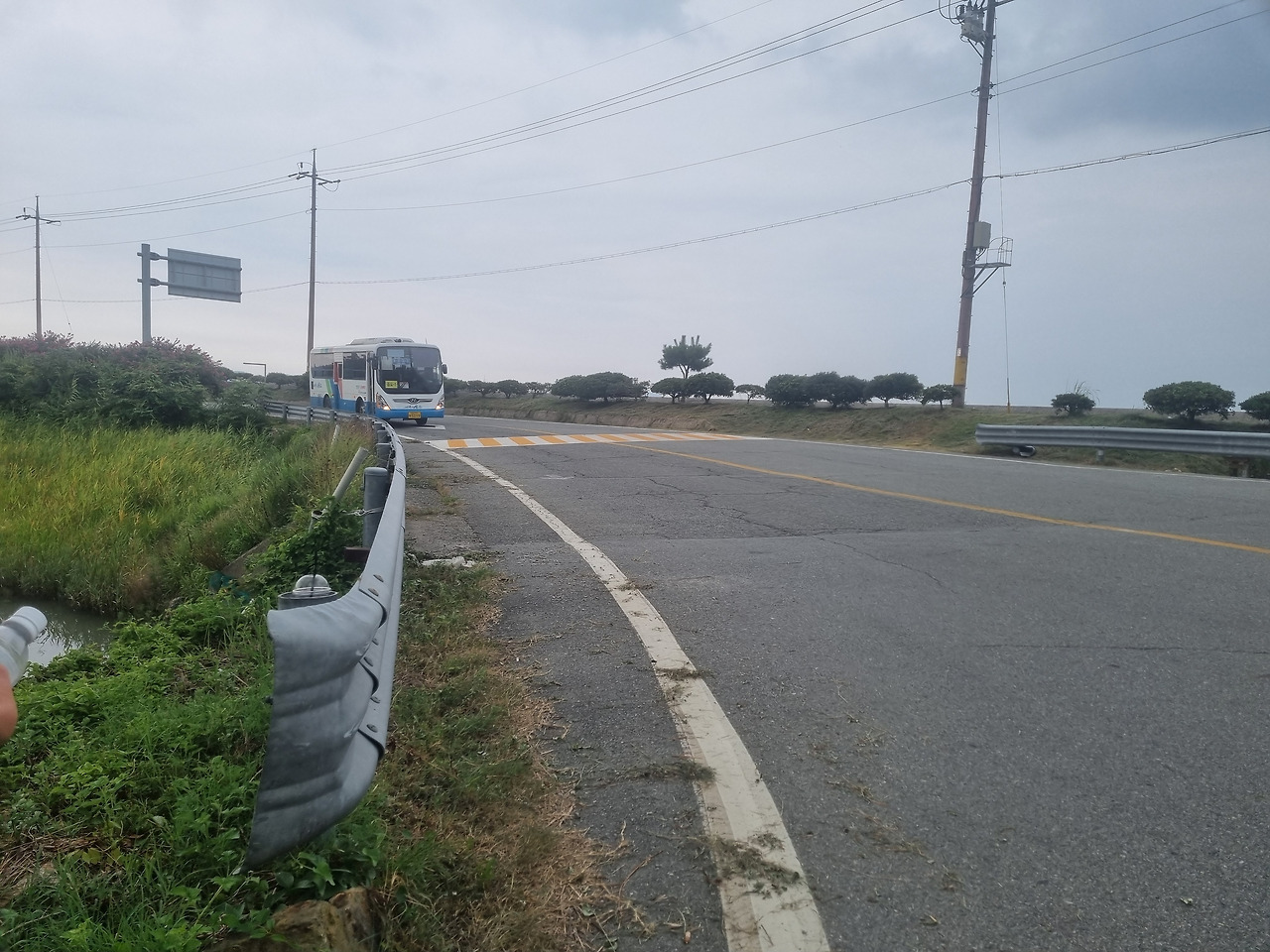 우리를 다시 지도로 데려다줄 버스가 도착했다. 손님은 우리 가족 셋이 전부다. 처음 계획은 해수욕장에서 텐트 치고 야영을 계획했지만 첫날 긴 이동으로 피곤한 아이들을 위해 목포로 돌아가 게스트하우스에서 묵기로 결정했다. 하지만 버스를 타고 기사님께 여쭤보니 지도에서 목포로 가는 시외버스가 없단다. 네이버에서 검색했을 땐 17시 넘어서 버스가 있었는데 실제로는 운행을 하지 않는단다.