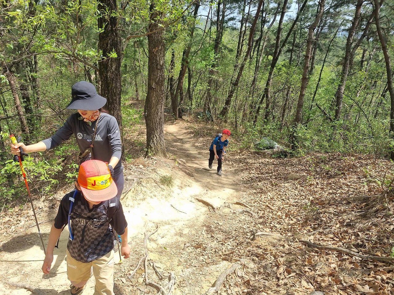 13km 산 길을 걸어 5시간을 넘게 가서 대패삼겹살을 먹고 소맥도 먹고 아이들도 사이다도 먹고 버스를 환승에 집에 간다.