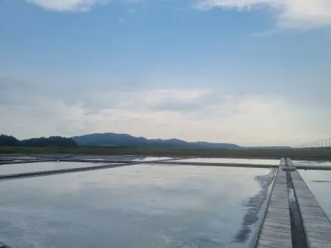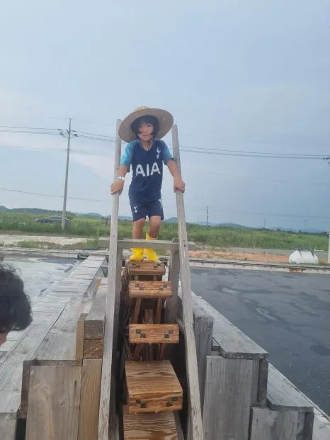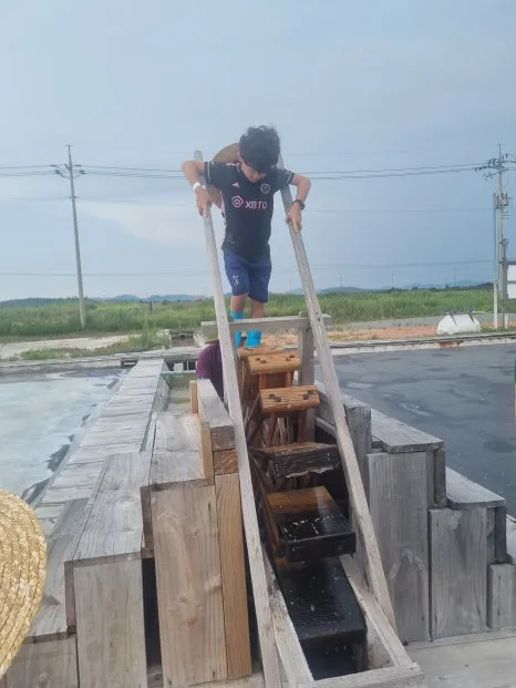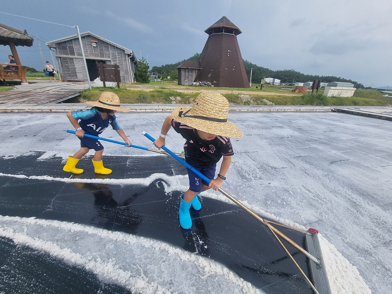 그다음으로 체험한 것은 수차라는 것이다. 이 수차는 바닷물을 모아 염도를 높인 창고에서 물을 증발지로 끌어올리는 역할을 한다. 사람이 직접 올라가 걸음을 걸으면 체중에 의해 수차가 돌고 물을 올라온다. 어린 친구들은 밑으로 빨려 들어갈 수 있어서 위험해 보였다. 관리 아저씨께서 아이들이 올라갈 땐 뒤에서 꼼꼼하게 살펴봐주셨다. 요즘은 수차보다는 전기 모터를 이용해 물을 끌어올린다고 하셨다.