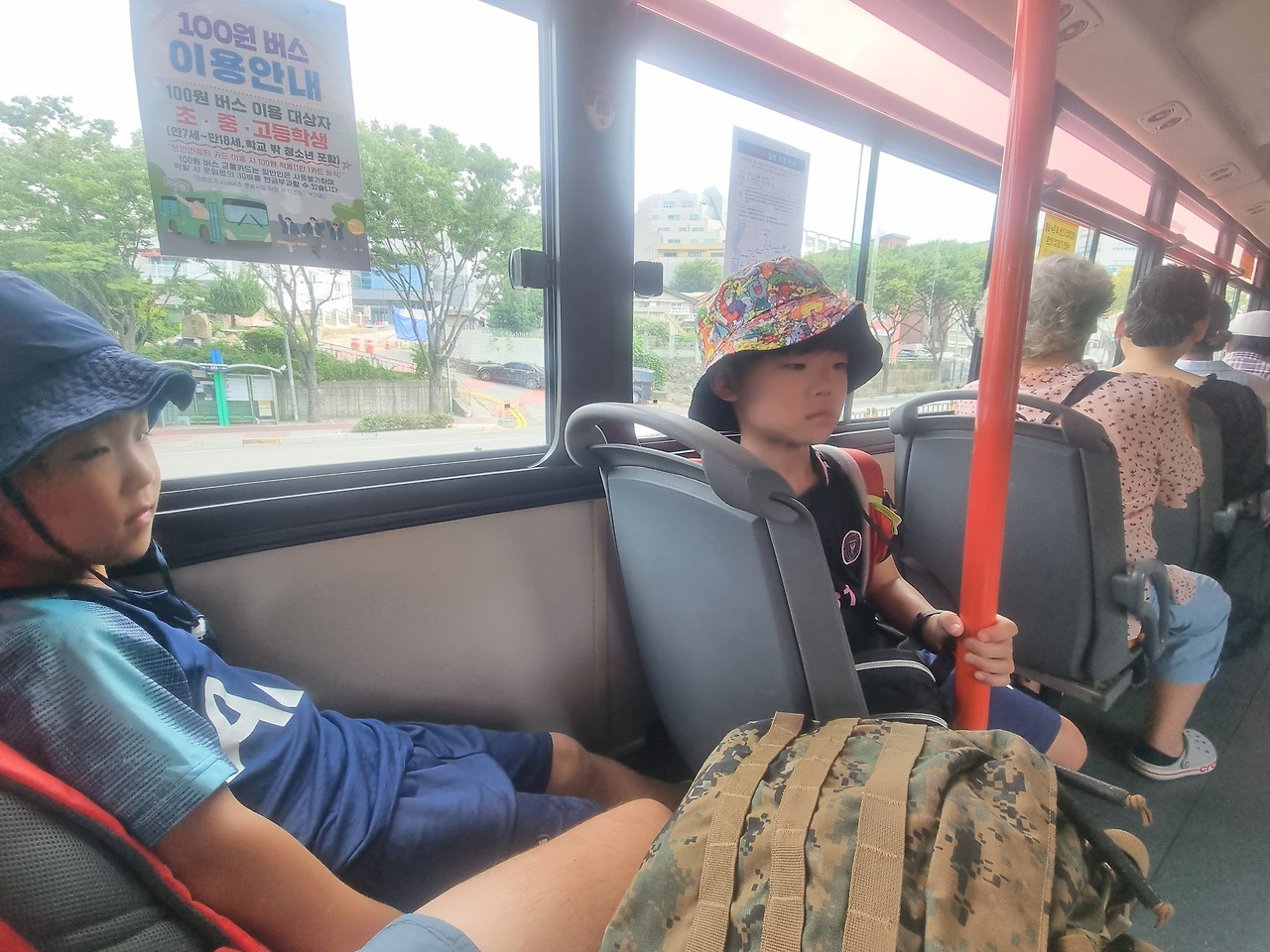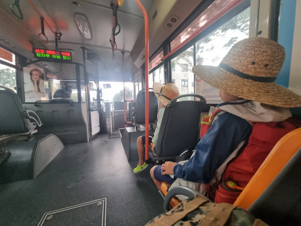 이번 여행에 버스와 기차를 이용할 거라고 아이들에게도 이야기했다. 아이들도 평소에 많이 타지 않는 버스와 기차를 탄다고 해서 많은 기대를 하고 있었다. 그런데 첫 버스를 타자, 아빠가 깜빡한 것이 생각났다.