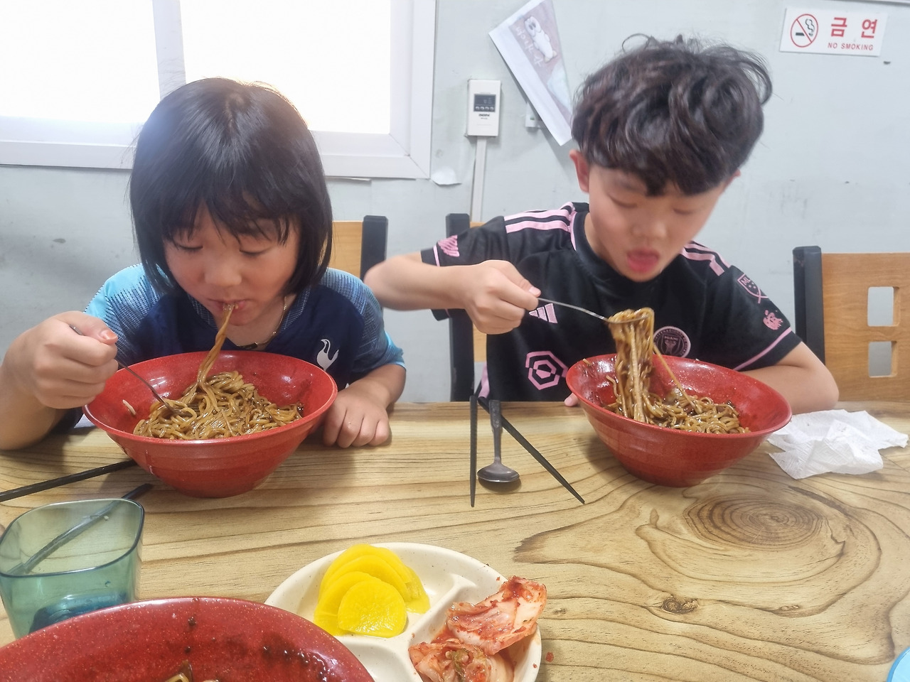 지도의 짜장면 맛은 어떨까? 짜장면은 항상 옳다. 아이들도 나도 오늘 한 것이라고는 기차 타고 버스 탄 것뿐인데 어찌나 짜장면이 달고 맛있는지 "아빠 다음에도 꼭 엄마랑 같이 오자 여기 짜장면 진짜 맛있다." 우리 집 심 씨 중 유일한 F인 둘째가 짜장면을 먹으며 엄마생각을 다 한다. '그래 네가 나보다 낫네'
