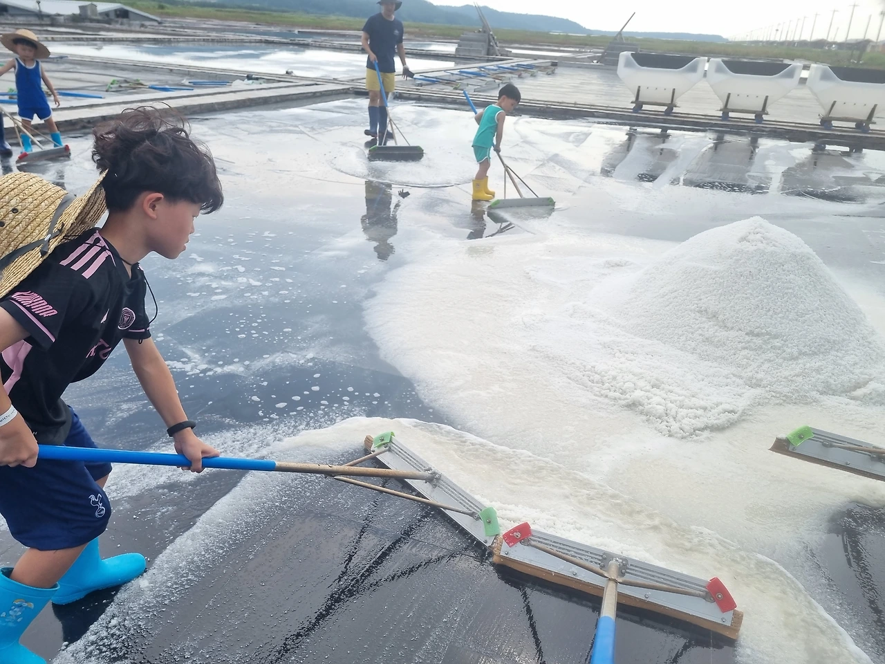 굵은소금이 아이들 장화 속으로 들어가 따갑게 하기도 했다. 이 소금은 실제 먹는 건 아니고 체험용으로 사용하신다고 한다.