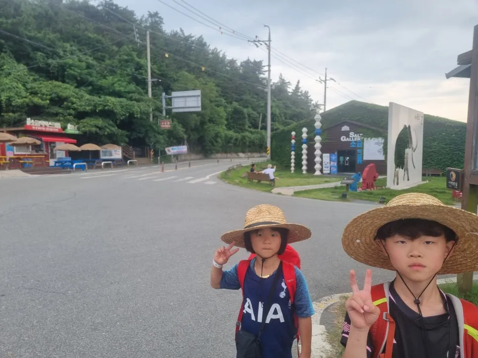 중간중간에 소나기가 내려 다시 모자를 쓰고 홀딱 졌었다. 버스 안은 시원하다 못해 추워 아이들 외투를 입혀야 했다. 아이들도 아빠도 모두 지쳤다. 그래도 아이들은 즐거워 보였다.