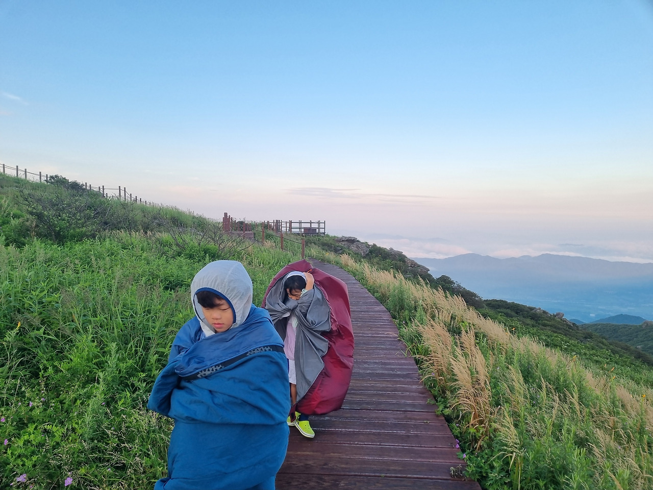 노고단 일출도 이런 바람도 아이들에겐 모두가 새로운 경험이기에 노고단까지 아이들을 데려온 보람을 느꼈다. 언제 몸이 날아갈 듯한 바람을 맞으며 걸어보겠는가. 아이들을 데려온 보람이 컸다ㅏ.