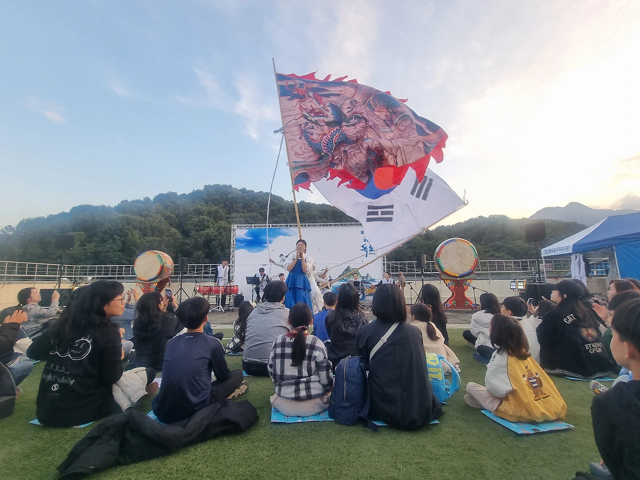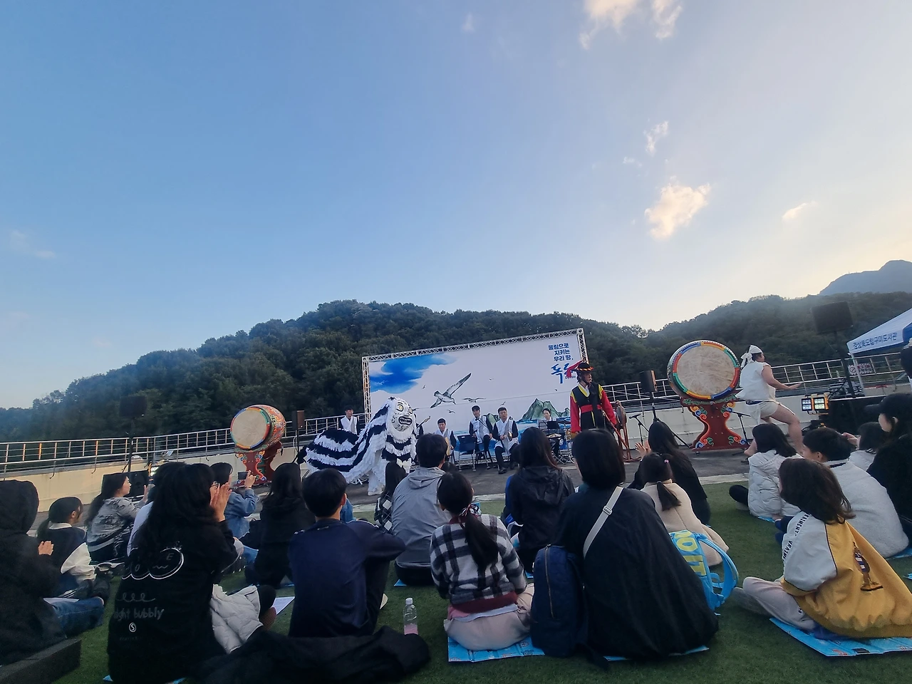 토요일 오후, 아이들과 오후에 도서관 공연에 참석했다. 며칠 전부터 아내에게 국악 공연을 옥상에서 하니 가보자는 얘기를 들었다. '그저 그런 공연이겠거니, 옥상이라는 장소만 독특하겠지'라는 생각으로 옥상에 올랐다.
