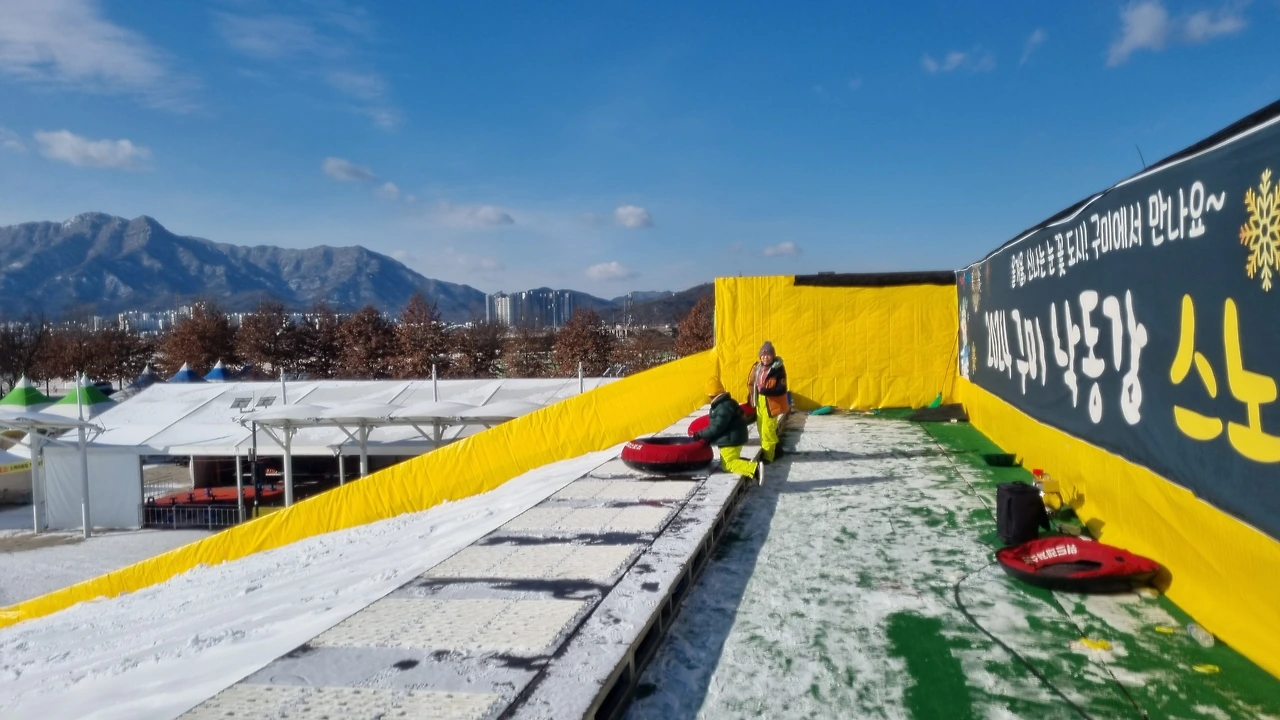평일 텅 빈 썰매장 10시부터 15시까지 꽉꽉 채워 뽕을 뽑았다.