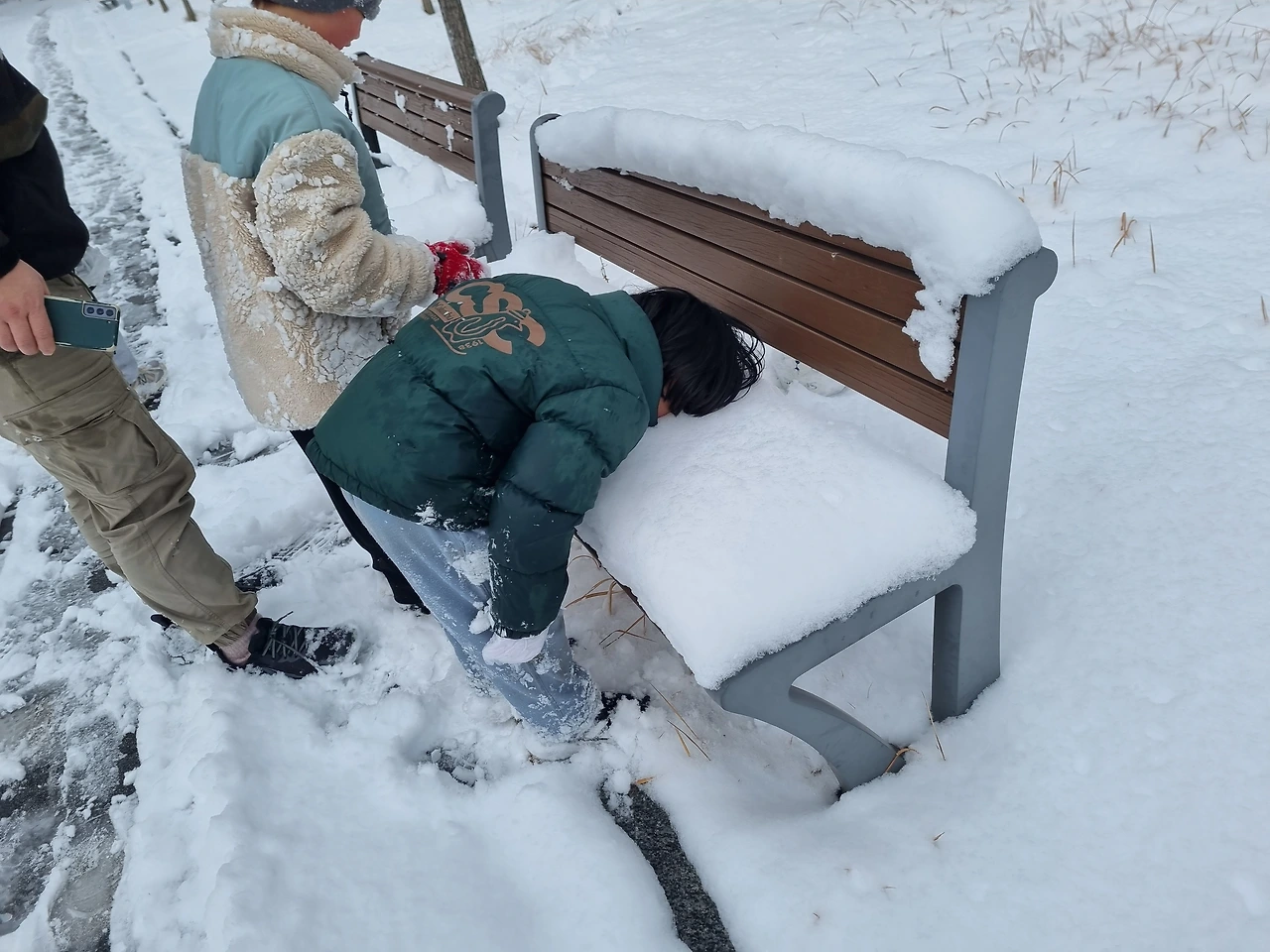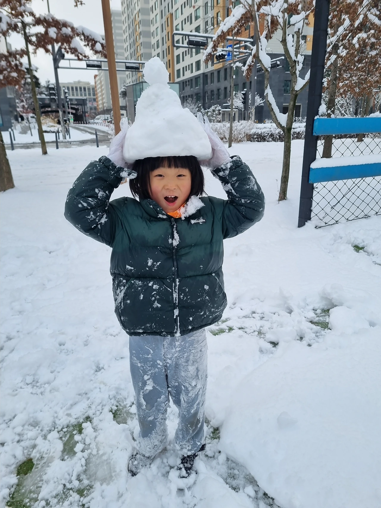 부지런한 아이들과 부모님들은 벌써 나와 눈놀이를 즐기고 곳곳에 어느샌가 눈사람도 보였다. 나도 눈사람을 열심히 만들었다. 힘들다는 생각도 하지 못하고 허리 한 번 제대로 펴볼 겨를 없이 눈사람을 완성했다.