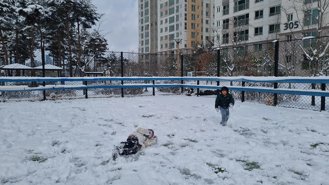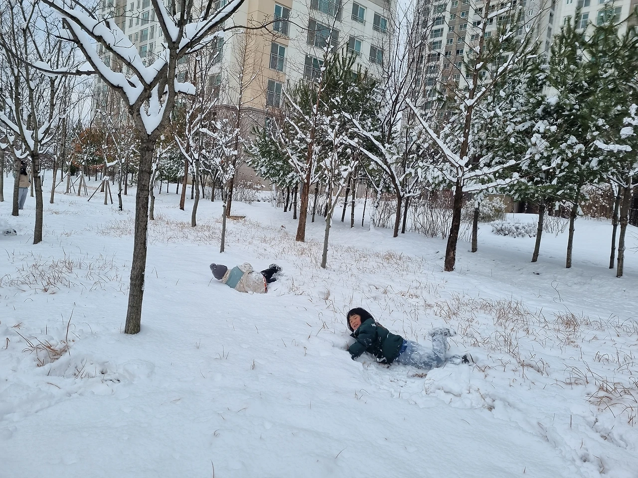 오랜만에 정말 오랜만에 어린 시절로 돌아간 것처럼 아이들과 눈놀이를 즐겼다.