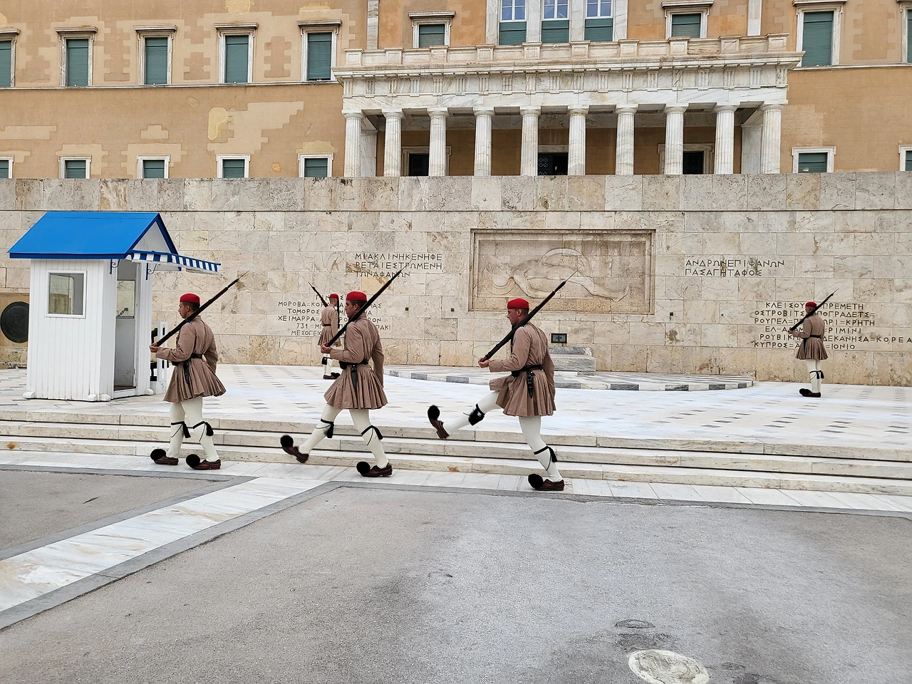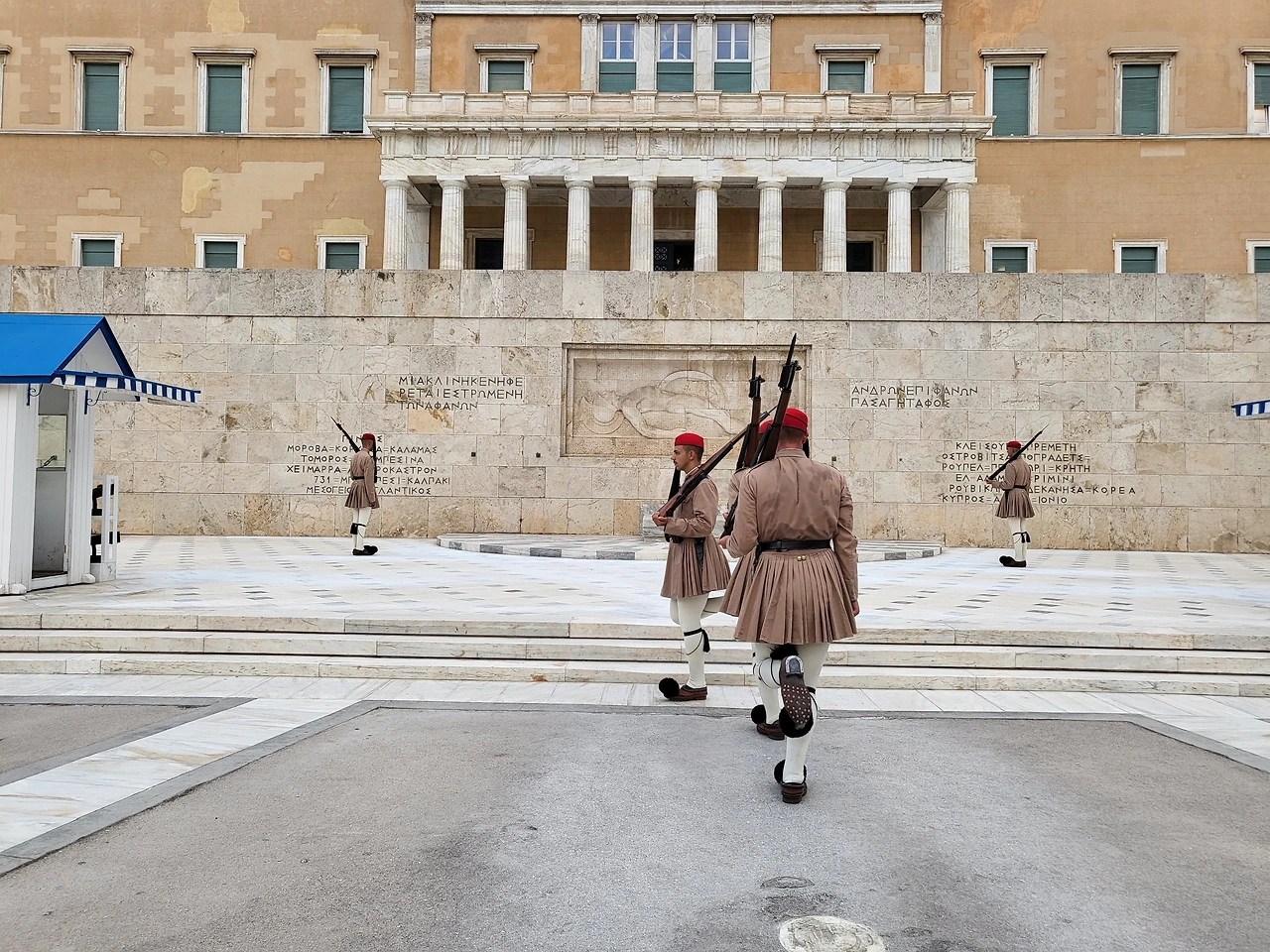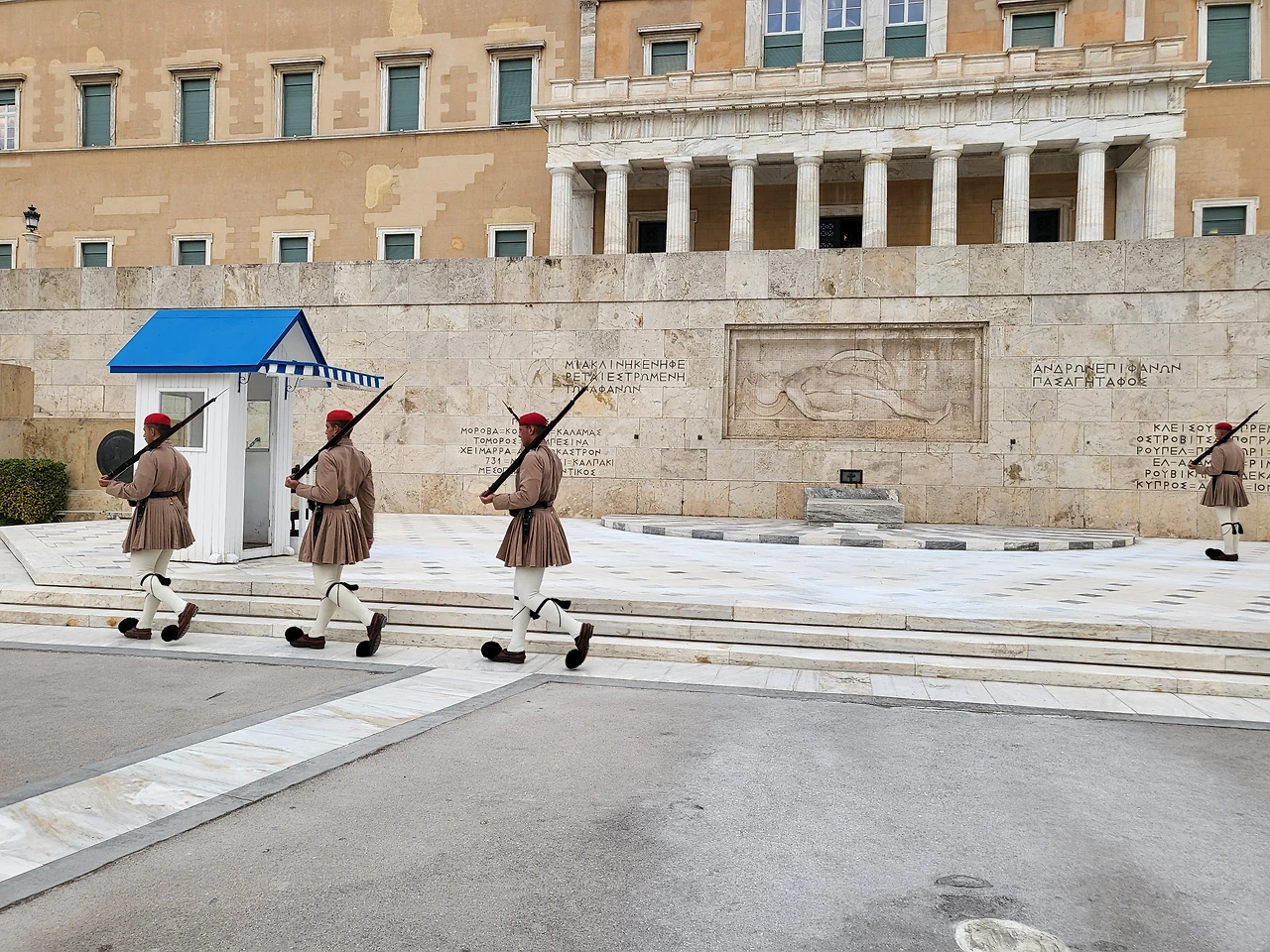 어느덧 한 시간이 흘러 위병교대식 시간이 되어간다. 적절한 곳에 자리 잡고 섰는데 위병들이 걸어 들어오는 장면부터 교대 장면을 정면에서 볼 수 있게 되었다. 화려하지는 않지만 느리고 절제된 동작의 위병교대식은 꽤 볼만했다.