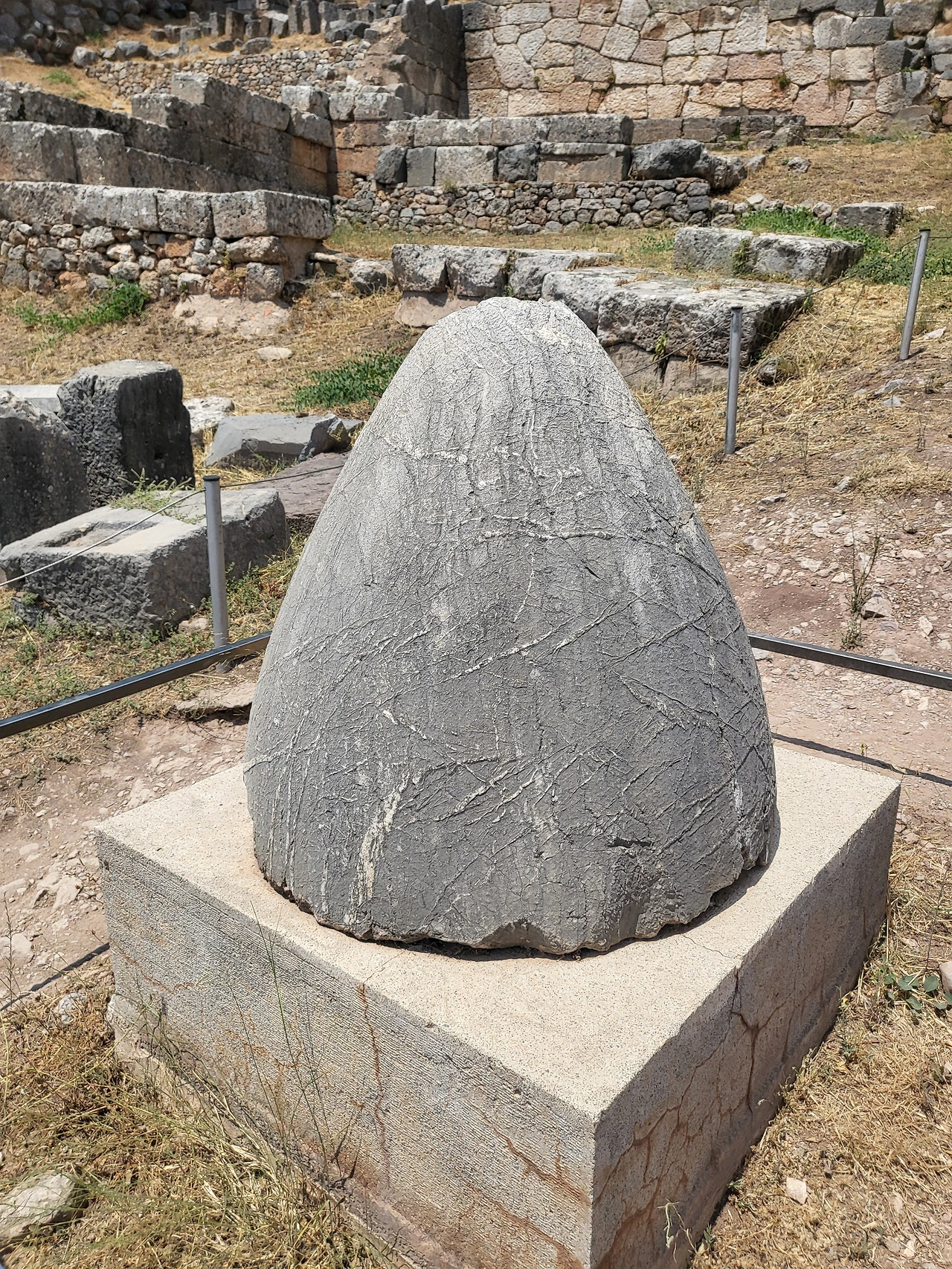 델피의 아폴론 신전에는 특이하게 생긴 돌이 하나 놓여있다. 물론 진품은 박물관 안에 있지만. 제우스 신이 각기 다른 방향으로 날린 새들이 만난 곳, 그리하여 세상의 중심이 된 이곳에 세운 돌, '세계의 배꼽'인 옴팔로스(omphalos)이다.
