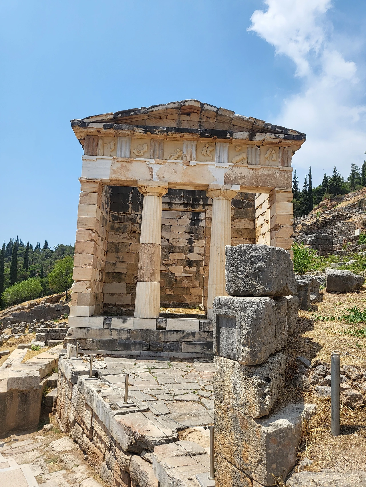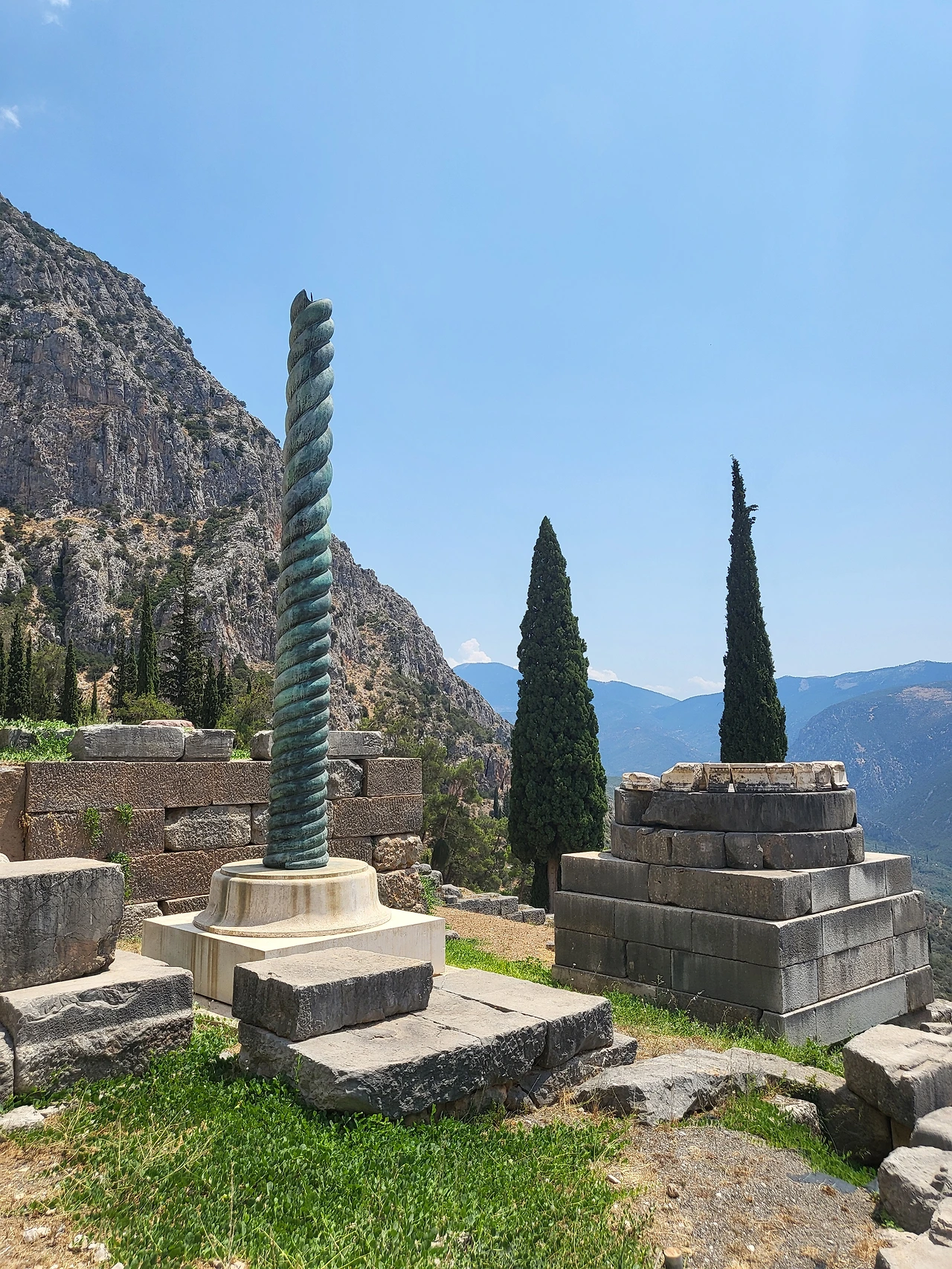 한여름 땡볕 아래의 델피는, 협곡에서 불어오는 바람은 좋지만 산책은 힘들다. 그래도 극적인 풍광과 이야기를 담고 있어서인지 힘들어도 흥미로웠다. 델피 박물관은 이곳에서 출토된 것, 델로스 섬의 스핑크스를 비롯한 많은 유물은 소장하고 있어서 보는 재미가 있었다. 덕분에 그리스-로마 신화를 복습해보기도 했고.