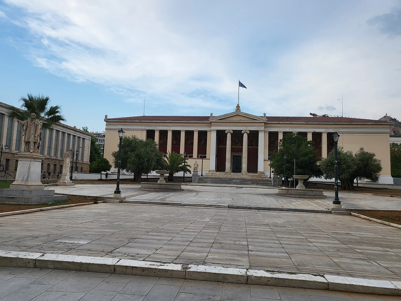 아테네 학술원 옆은 아테네 국립 대학교의 분교인 카포디스트리아스 대학교로 1837년 당시 그리스 국왕 오톤에 의해 설립된 그리스 최초의 대학이라고 한다. 원래 국왕의 이름을 따 오톤 대학교라 명명되었으나, 왕의 퇴위 이후 1862년 그 명칭이 바뀌었다고 한다.