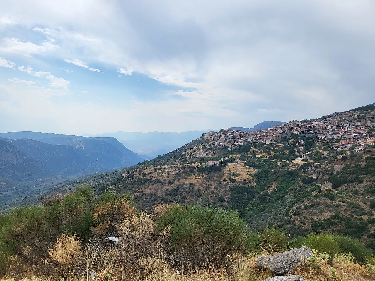 델피에서 아라호바 마을을 거쳐 내려오면서 전망이 좋은 곳에서 파르나소스산 아래의 협곡 풍경을 즐긴다. 언젠가는 차를 몰고 이곳에 올 수 있지 않을까. 편안하게 즐기면서.