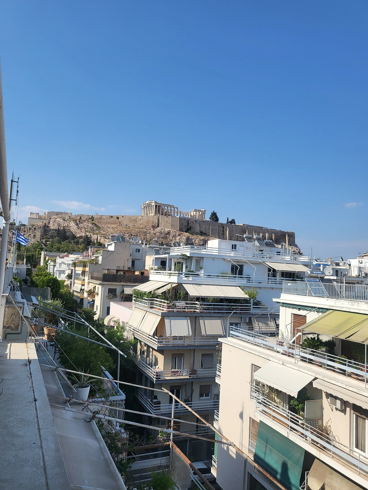 숙소의 발코니에서는 아크로폴리스가 보인다. 아크로폴리스의 한편에 장엄하게 서 있는 파르테논 신전이.